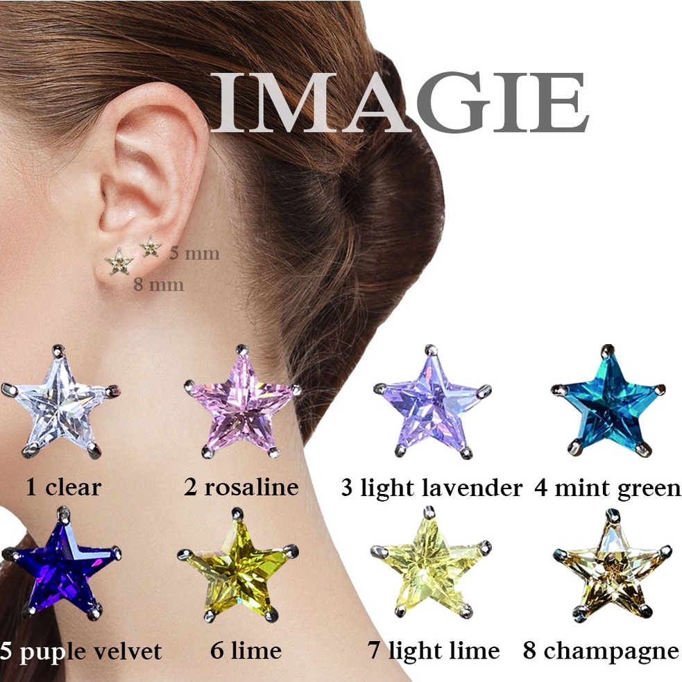 IMAGIE ต่างหูเพชรสังเคราะห์ ทรงดาวหลากสีสัน 5-8mm