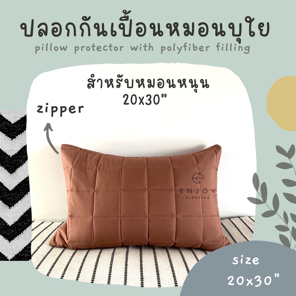 enjoysleeping ปล อกหมอน กันเปื้อน กันน้ำลาย บุใย quilted pillow protector case หนา นุ่ม ปลอกกันเปื้อนหมอน ขนาด 19x29”