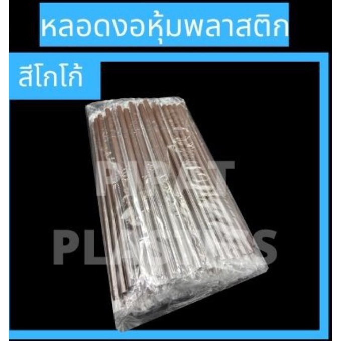 หลอดโกโก้ แบบมีถุงห่อ หลอดงอ ห่อพลาสติก สีโกโก้ 100 ชิ้น พร้อมส่ง