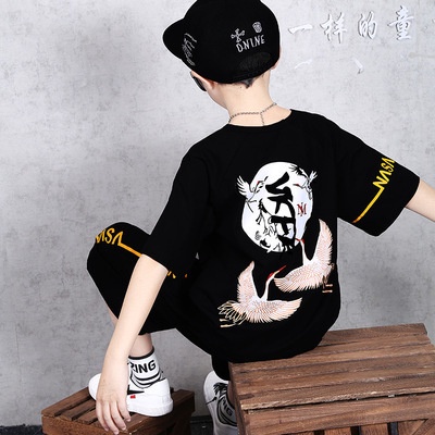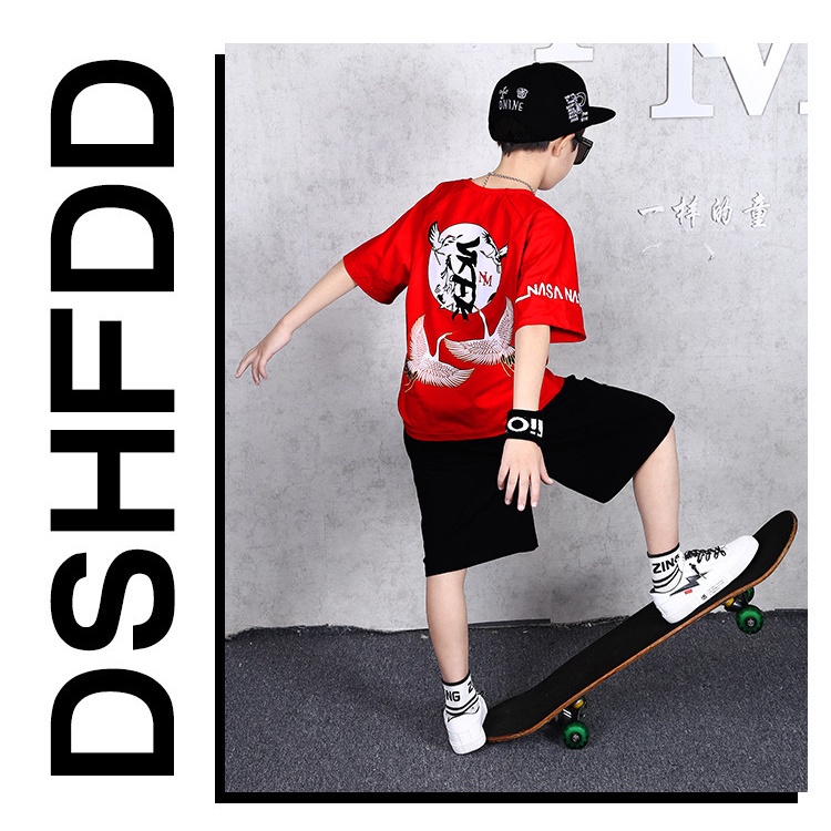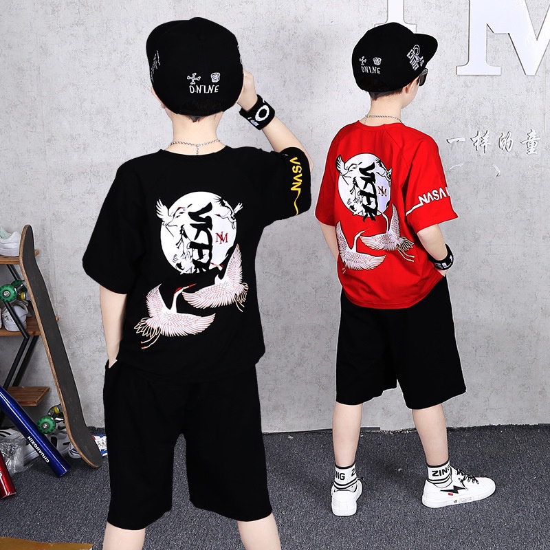 พร้อมส่ง เสื้อท็อป และกางเกง สไตล์ฮิปฮอป แฟชั่นฤดูร้อน สําหรับเด็กผู้ชาย ไซซ์กลาง 120-160 ซม.