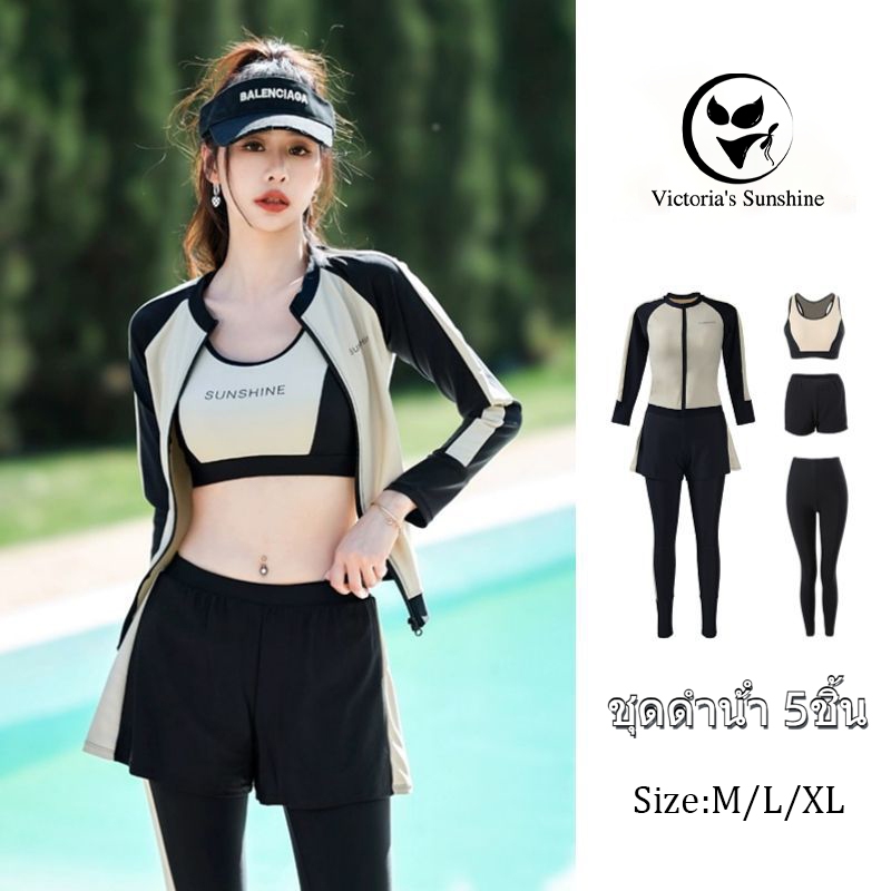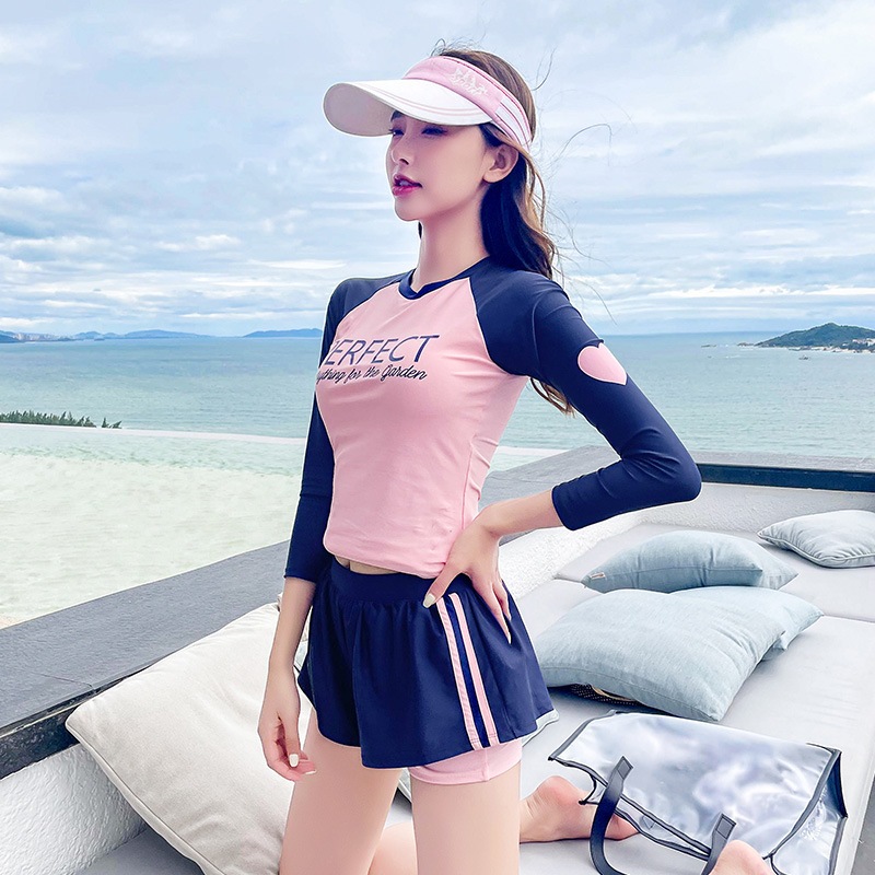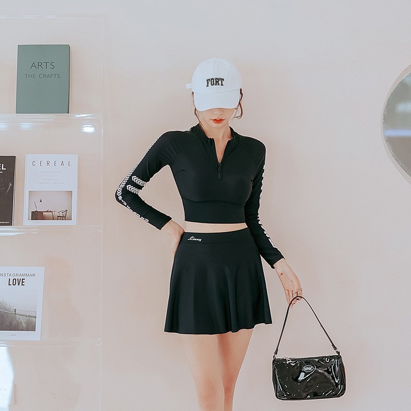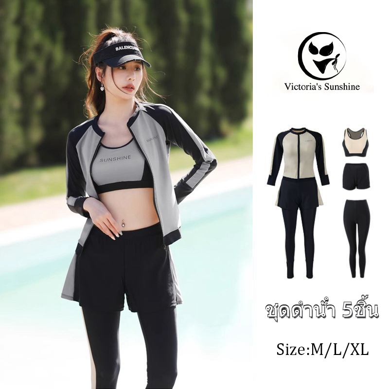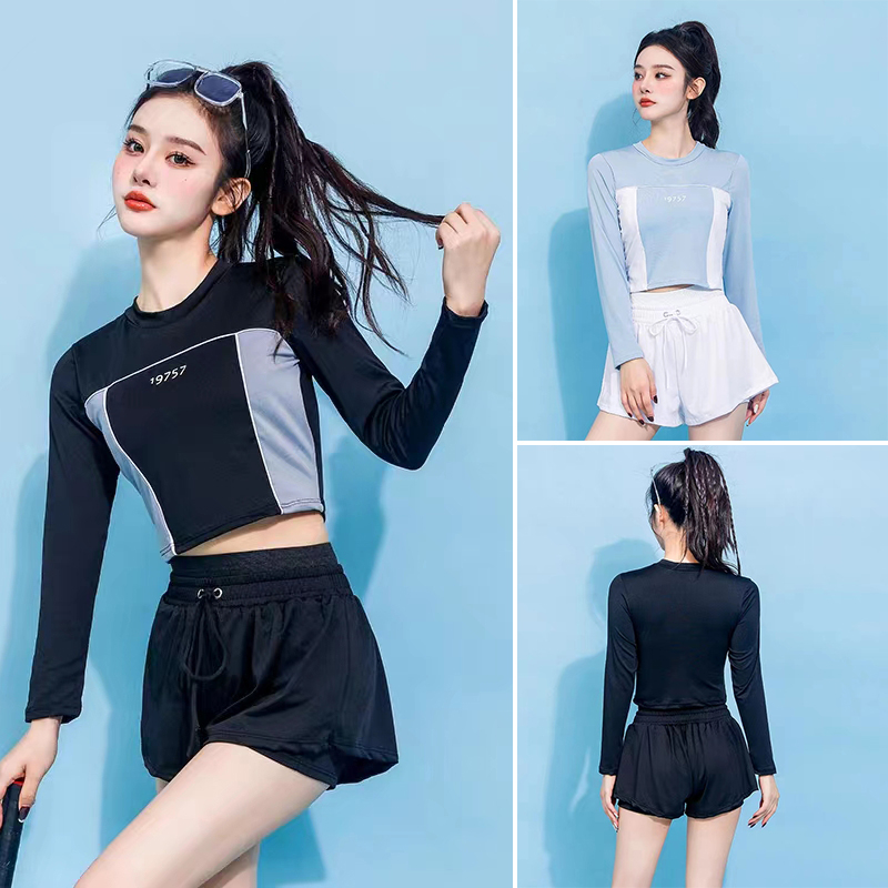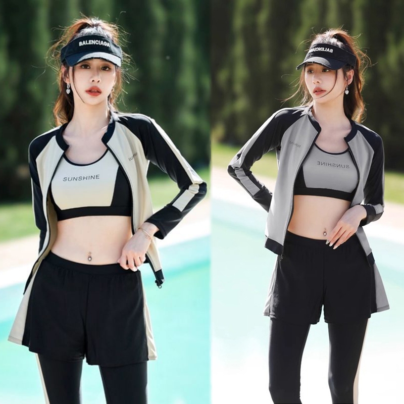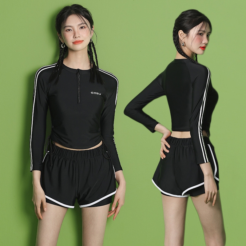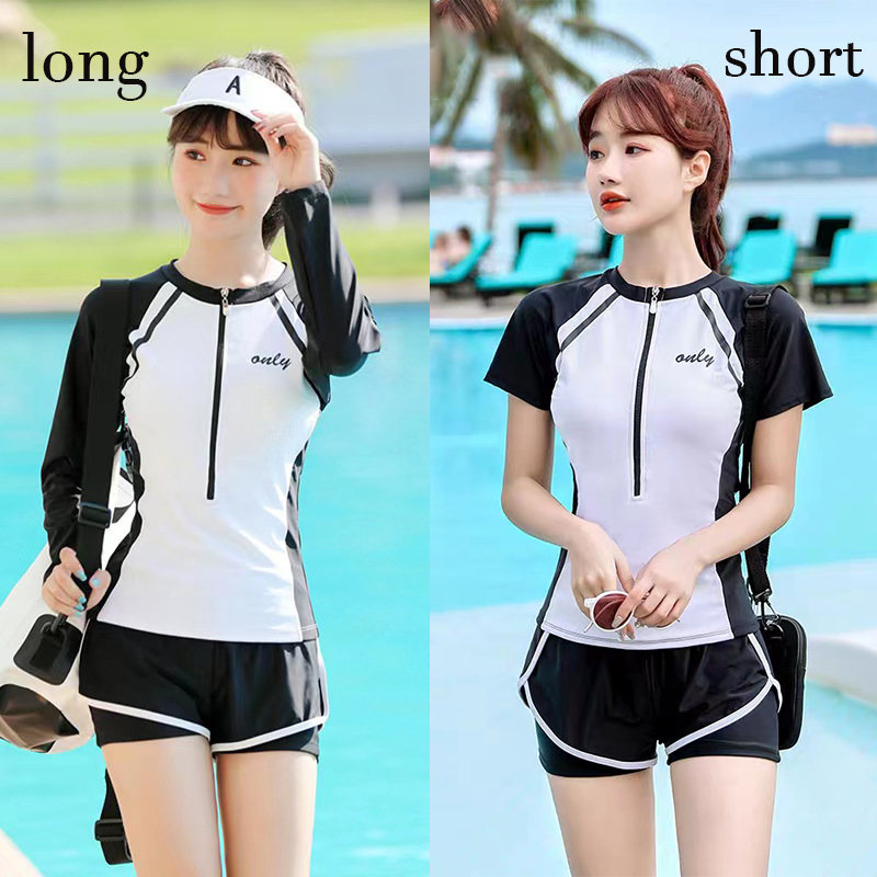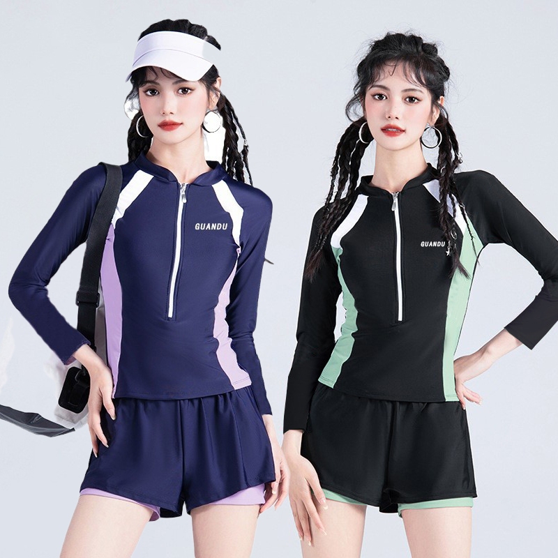 ชุดว่ายน้ําหญิง ชุดว่ายน้ํากีฬา ชุดว่ายน้ำ เสื้อแขนยาว ผ้ามืออาชีพ สไตล์ซิป อนุรักษ์นิยมเอวสูง จัดส่งที่รวดเร็ว#77