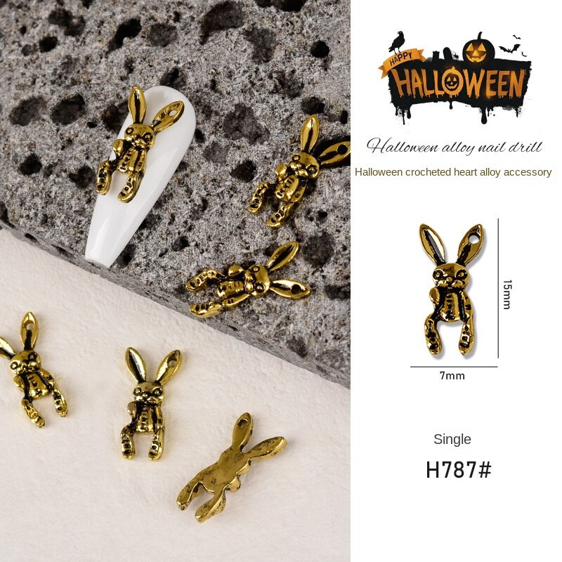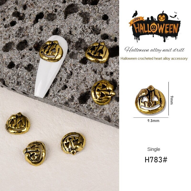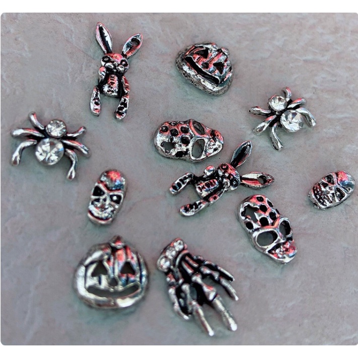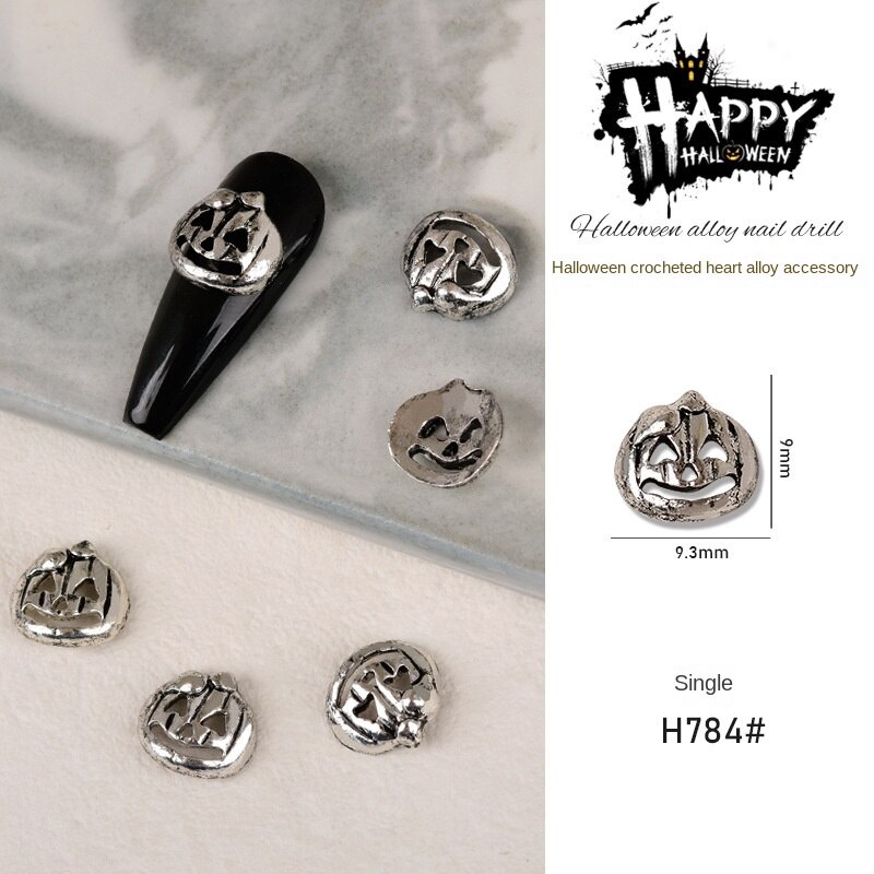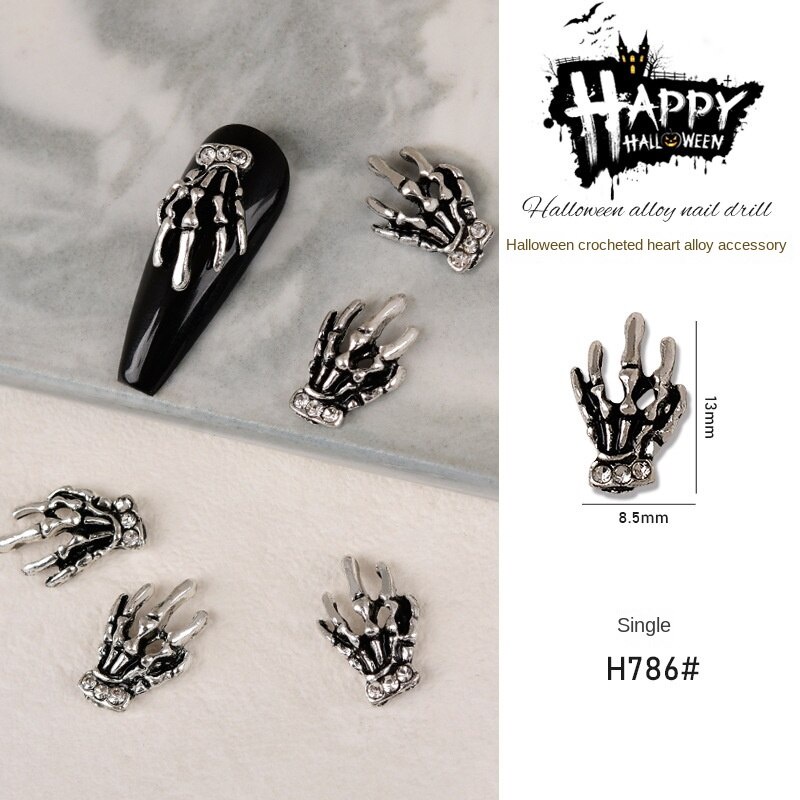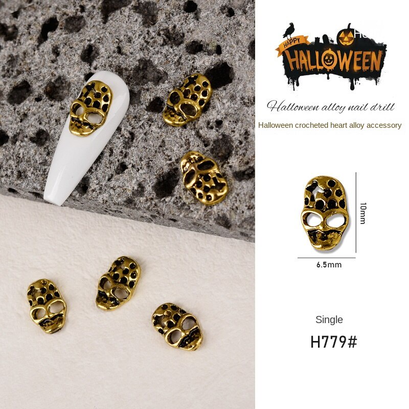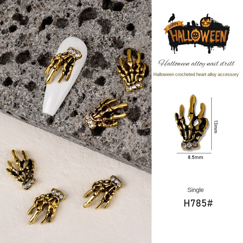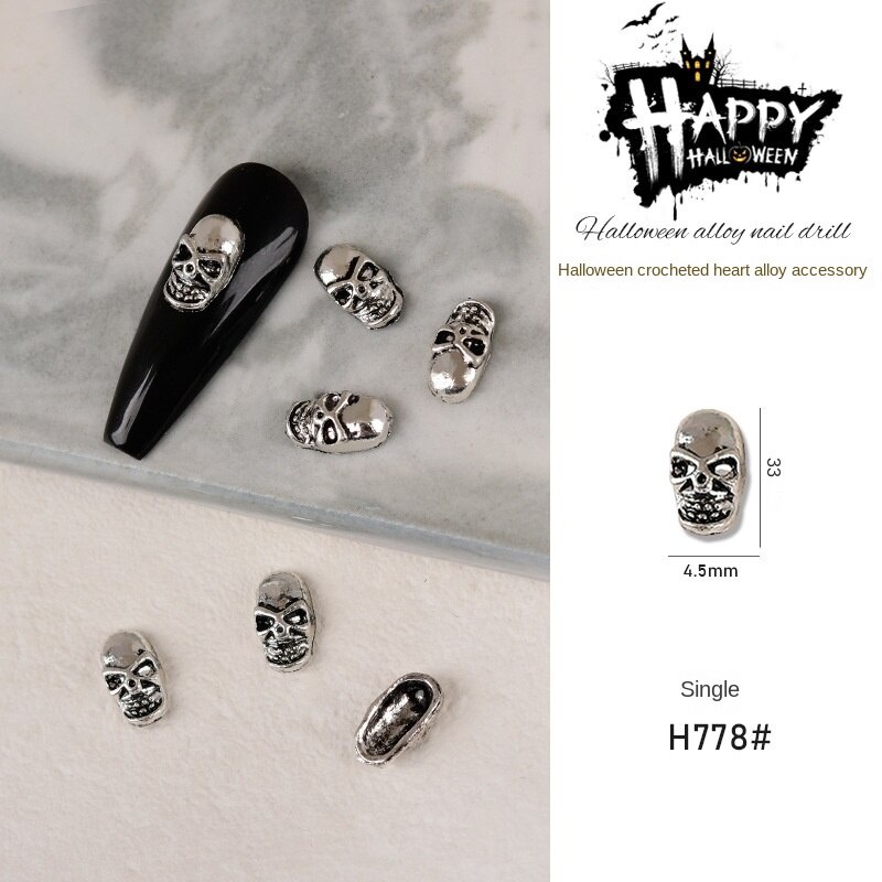 เครื่องประดับเล็บโลหะฮาโลวีน / เล็บผีเพชรประดับเล็บผีใบหน้ากะโหลกศีรษะแมงมุมเล็บ / เครื่องประดับเล็บโลหะผสมวินเทจ