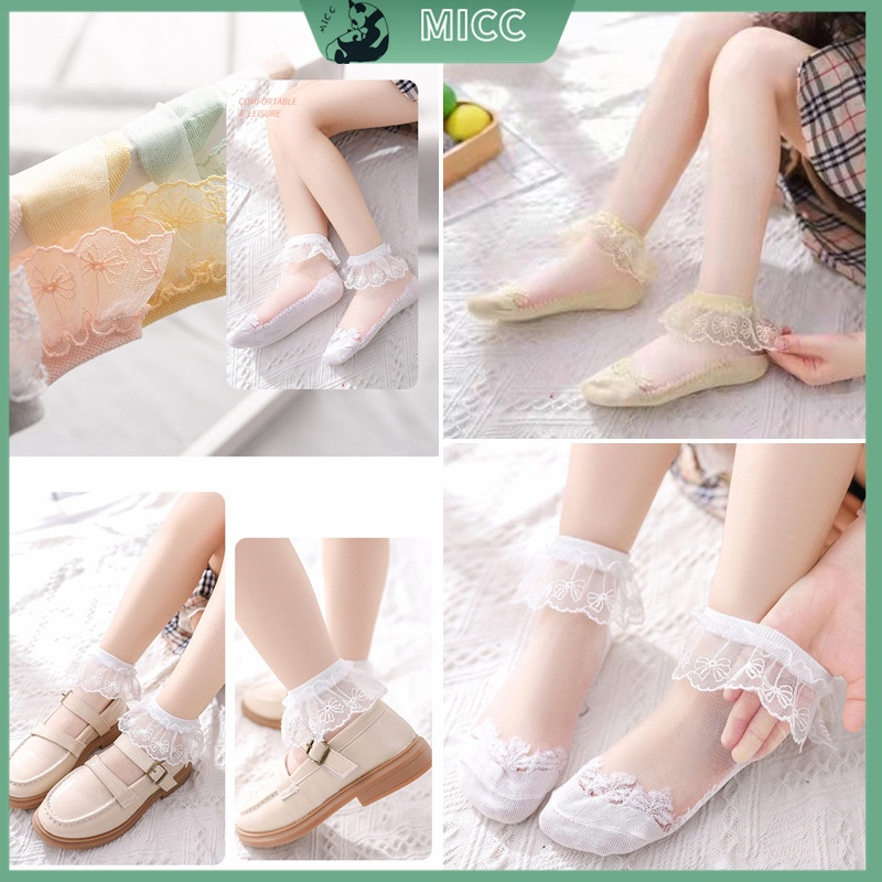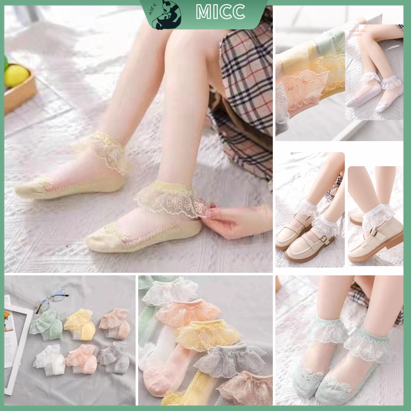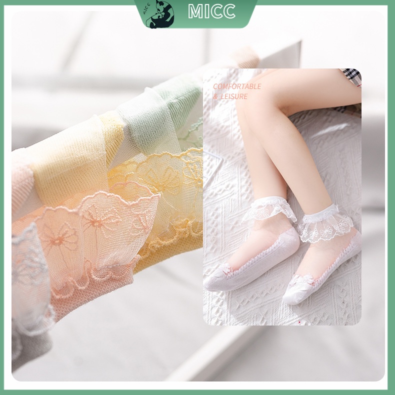 【Bangkok Delivery】1-13 ปี เด็กทารกถุงเท้าลูกไม้กลวง ถุงเท้าน้ำแข็งลูกไม้ ถุงเท้าคริสตัลบางฤดูร้อนถุงเท้าเจ้าหญิงลูกไม้เด็ก