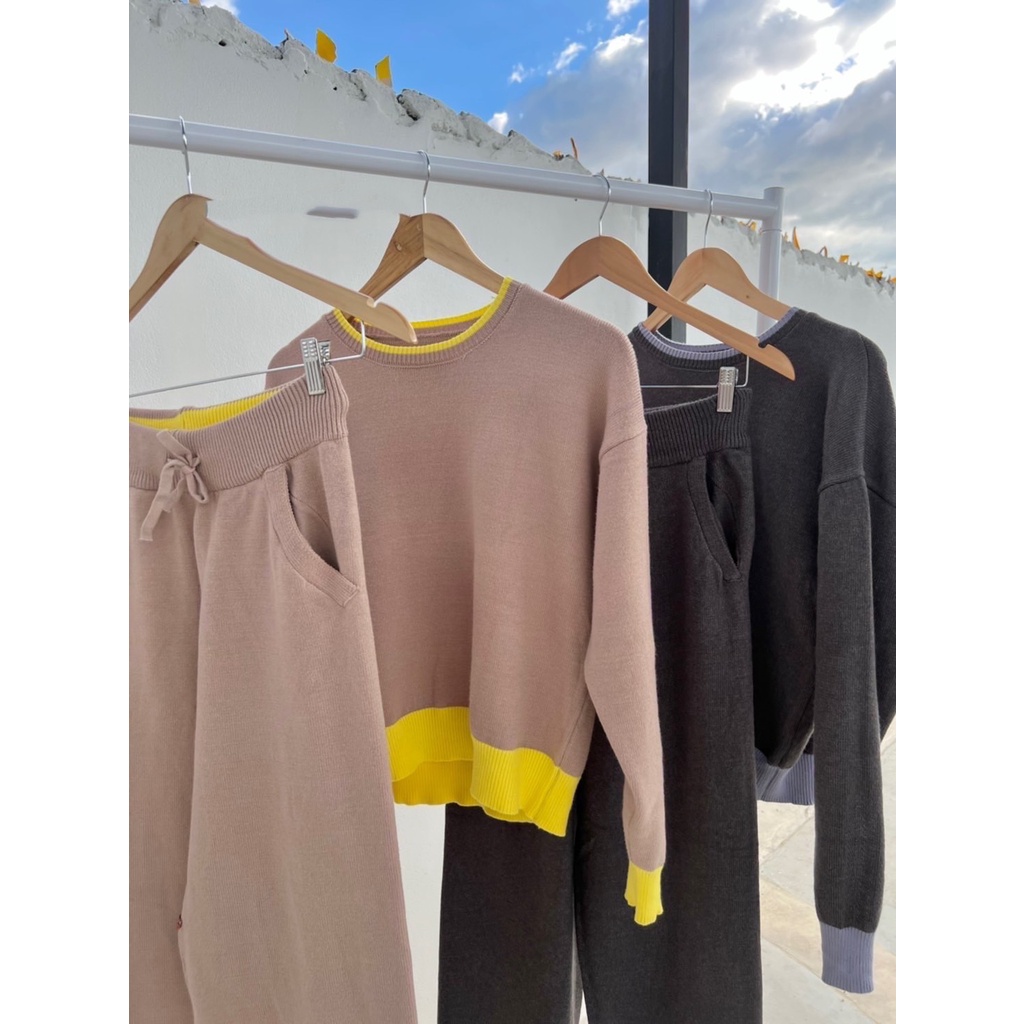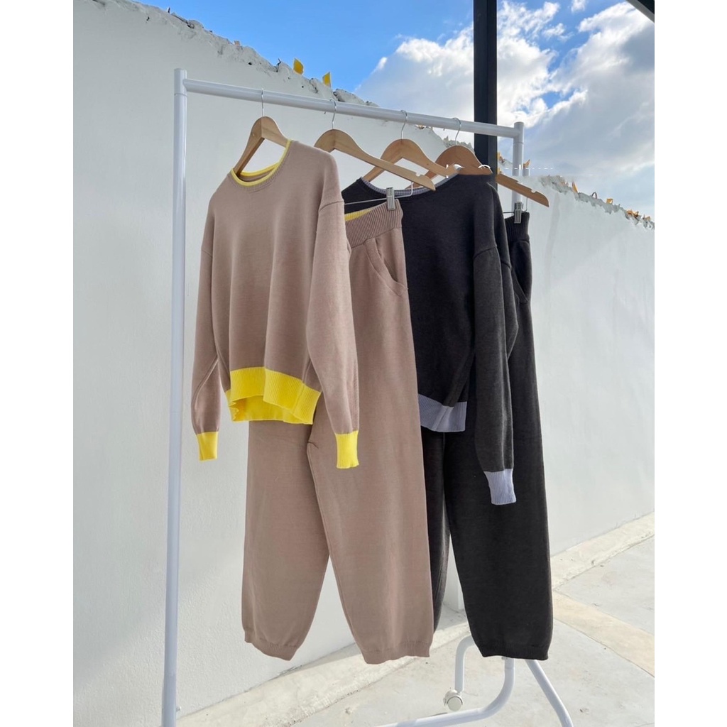 [ใส่โค้ด DETMAR30 ลดเพิ่ม 30%] เซทเสื้อสเวตเตอร์ผ้าไหมพรม+กางเกงเนื้อบาง เซทเสื้อผู้หญิง คุมโทน เเฟชั่น