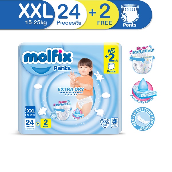 Molfix ผ้าอ้อมเด็กโมลฟิกซ์ เอ็กซ์ตร้า ดราย แพ้นส์ XXL 24+2 ชิ้น