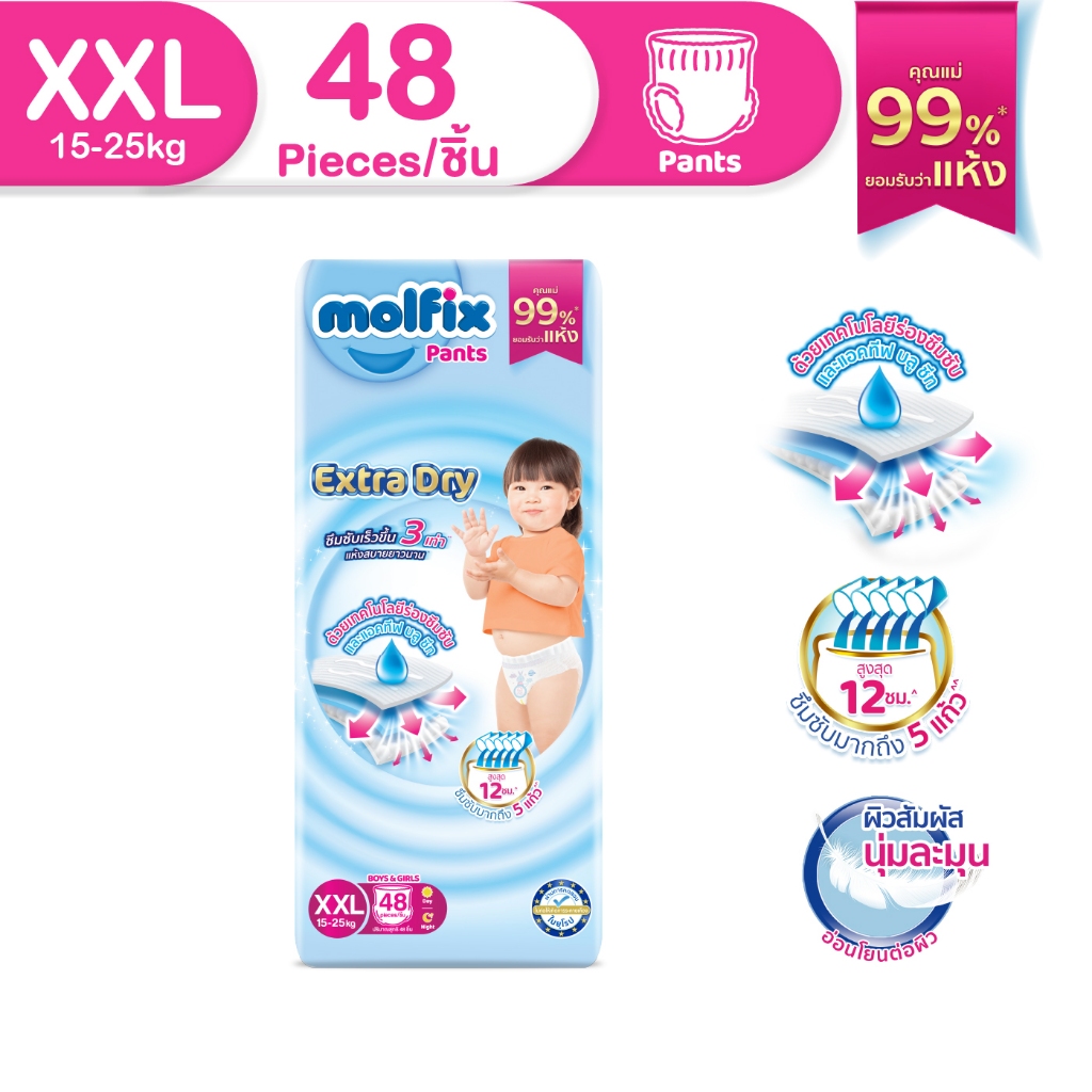 Molfix ผ้าอ้อมเด็ก โมลฟิกซ์ เอ็กซ์ตร้า ดราย แพ้นส์ XXL 48 ชิ้น