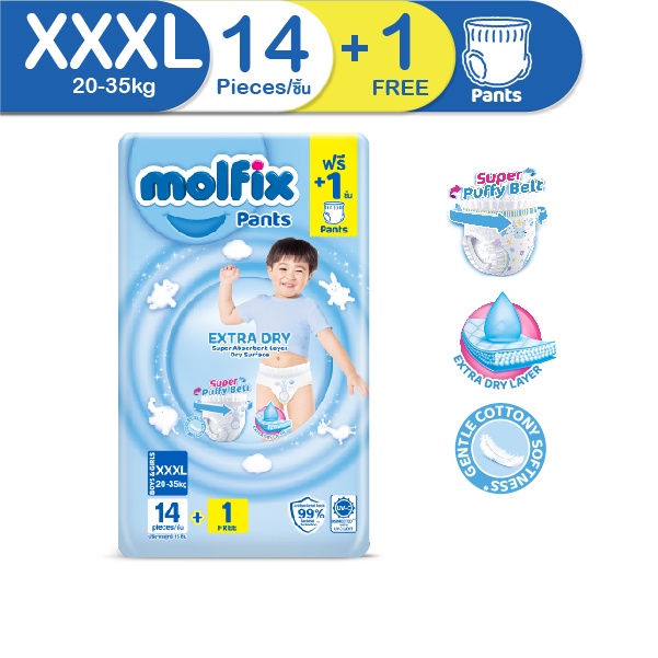 Molfix ผ้าอ้อมเด็กโมลฟิกซ์ เอ็กซ์ตร้า ดราย แพ้นส์ XXXL 14+1 ชิ้น