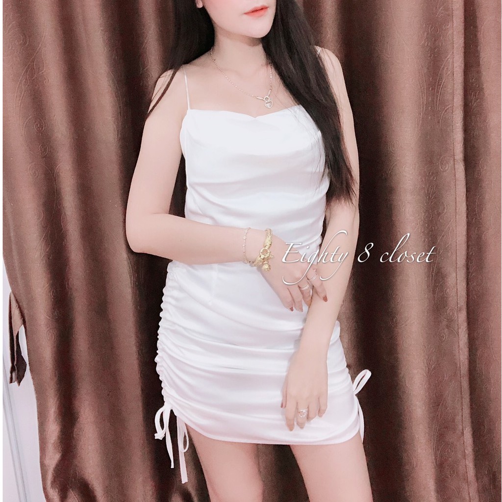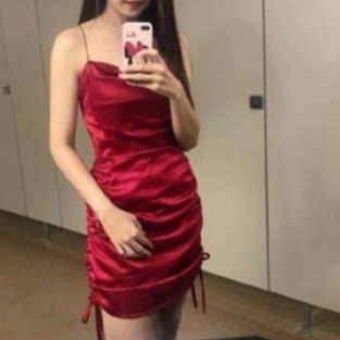 🔥ชุดไปงาน🔥 เดรสสายเดี่ยว คอถ่วงย่นข้าง ผ้า Zara รีวิวแน่น ปรับสั้นยาวได้ เปรี้ยวจี้ดเลยจ้า
