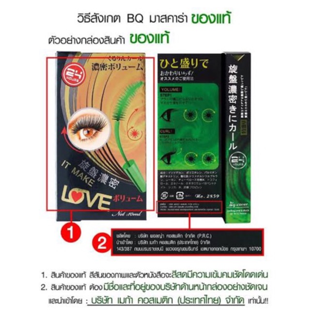 BQ COVER ,EXTENTION MASCARA มาสคาร่าเขียว ของแท้ ฉลากไทย