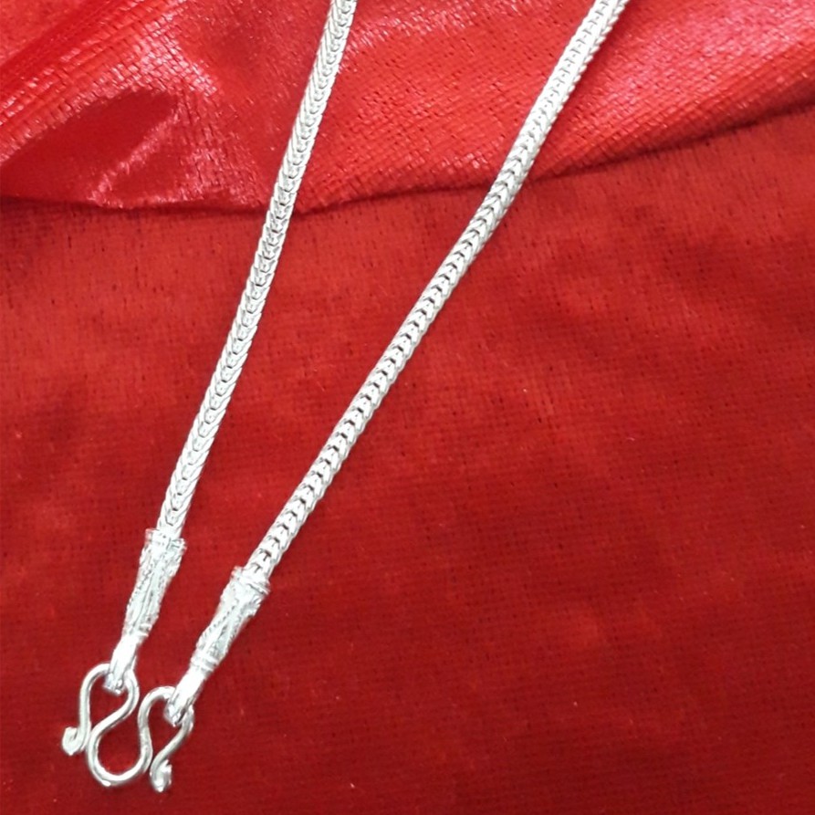 สร้อยคอเงินหัวจรวด ลายสี่เสา 2.5 มิล(ขนาด1บาท)สร้อยคอเงินแท้ 92.5%