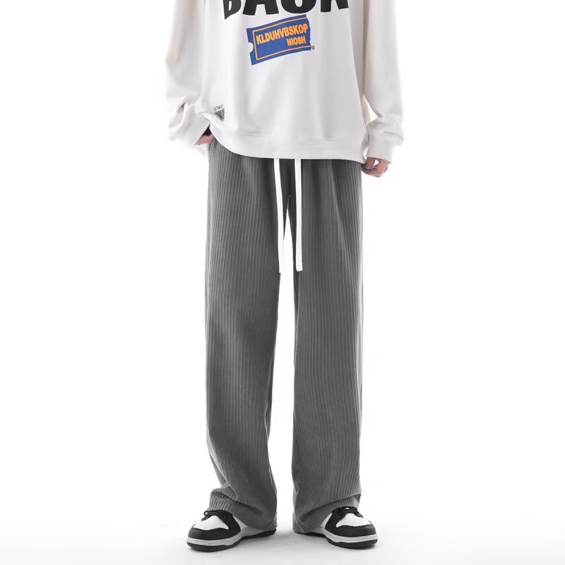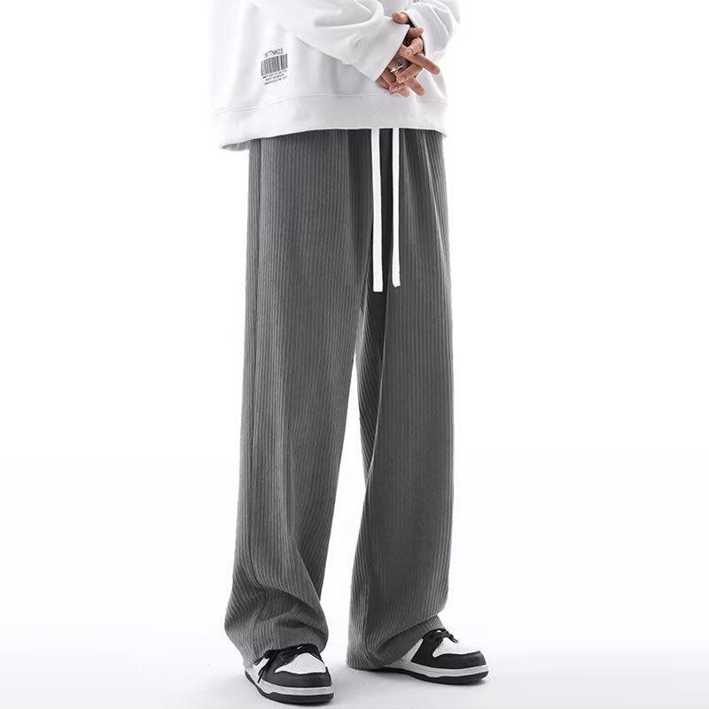 M - 5XL กางเกงผู้ชาย แฟชั่นเกาหลีหลวมขนาดบวกลำลองขากว้างกางเกงผ้าลูกฟูกผู้ชาย