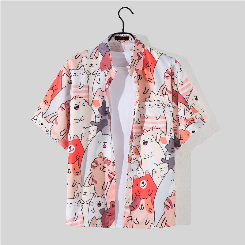 เสื้อเชิ้ต แขนสั้น พิมพ์ลาย ทรงหลวม สไตล์ฮาวาย เหมาะกับเดินชายหาด แฟชั่นฤดูร้อน สําหรับผู้ชาย