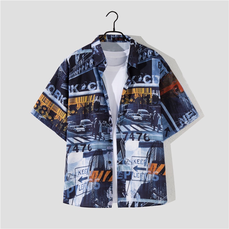 เสื้อเชิ้ต แขนสั้น ลําลอง พิมพ์ลาย ทรงหลวม สไตล์ฮาวาย เหมาะกับเดินชายหาด แฟชั่นฤดูร้อน สําหรับผู้ชาย