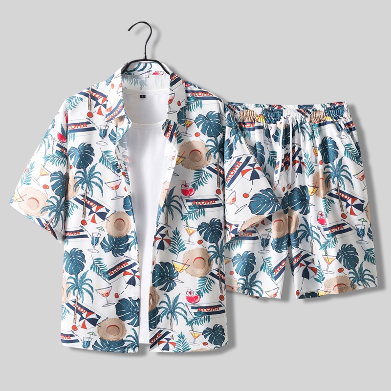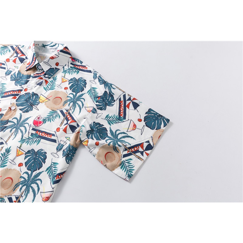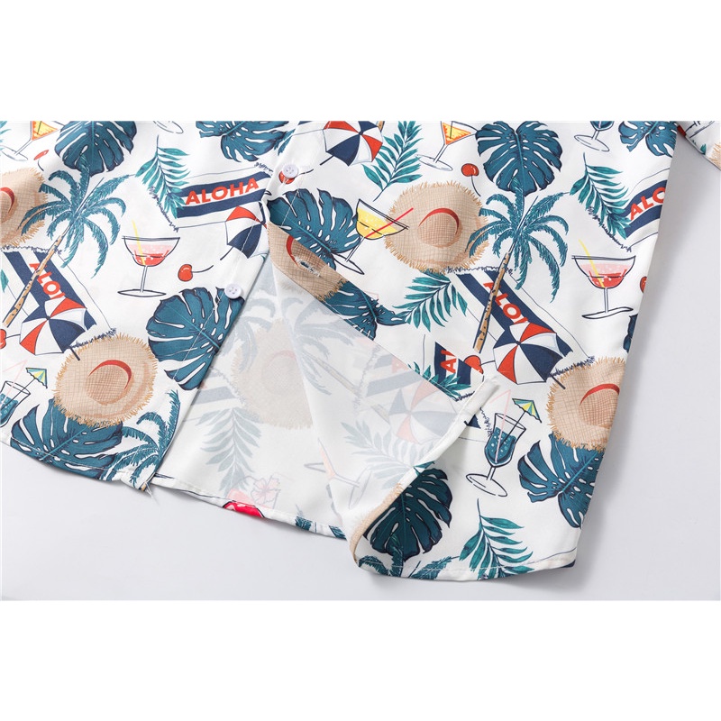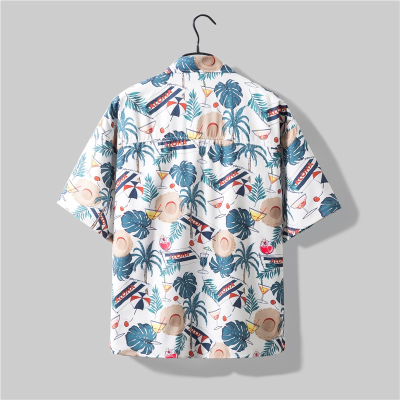 เสื้อเชิ้ต แขนสั้น พิมพ์ลายต้นมะพร้าว ทรงหลวม สไตล์ฮาวาย เหมาะกับเดินชายหาด แฟชั่นฤดูร้อน สําหรับผู้ชาย เสื้อเชิ้ตพิมพ์ลาย