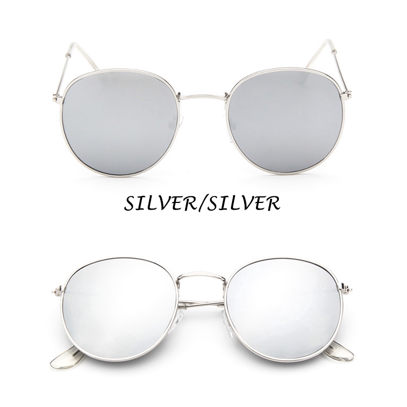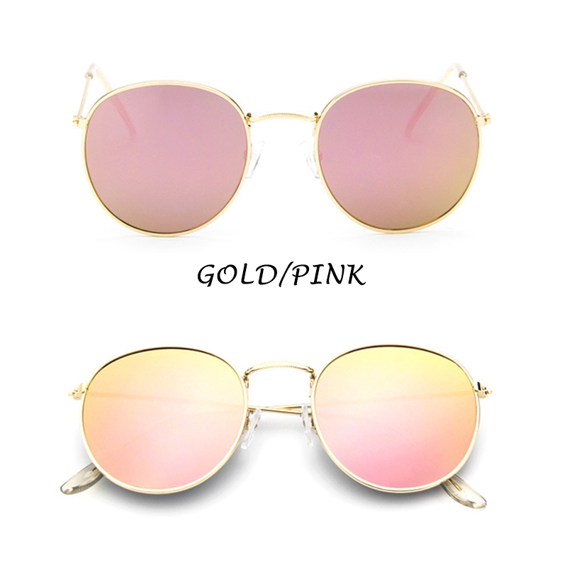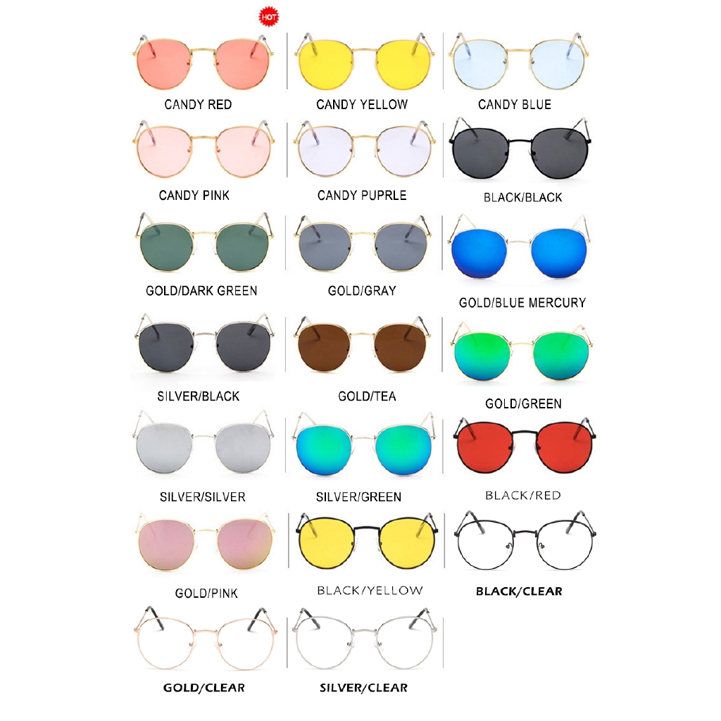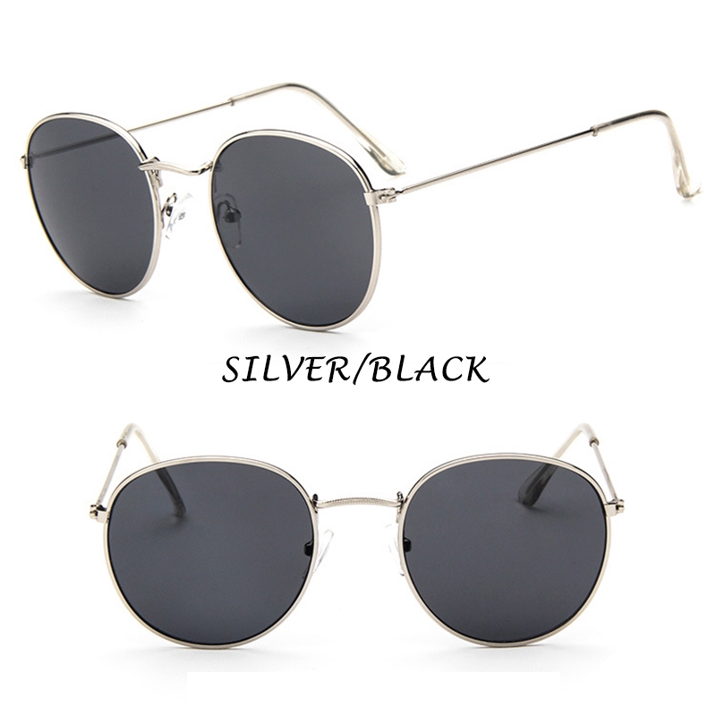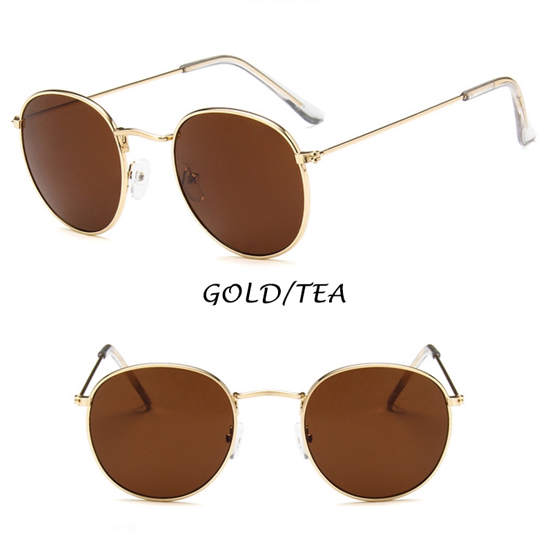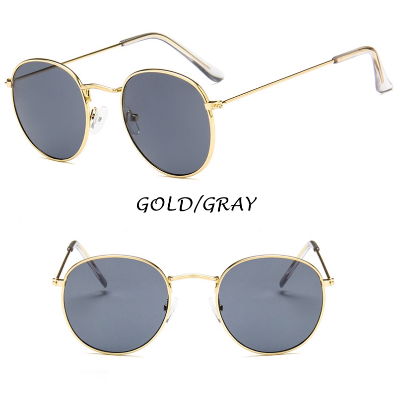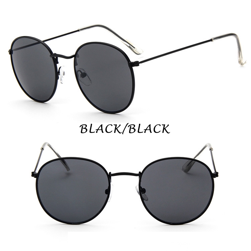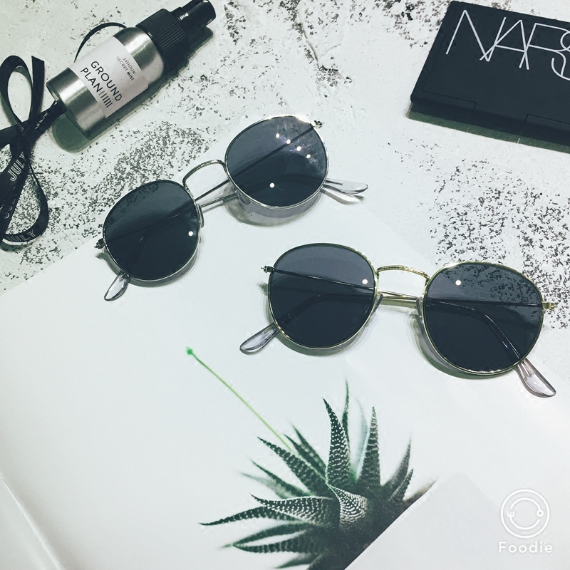 แว่นตากันแดด กรอบโลหะ แบบกลม สไตล์เกาหลี แบบย้อนยุค สำหรับผู้หญิงและผู้ชาย