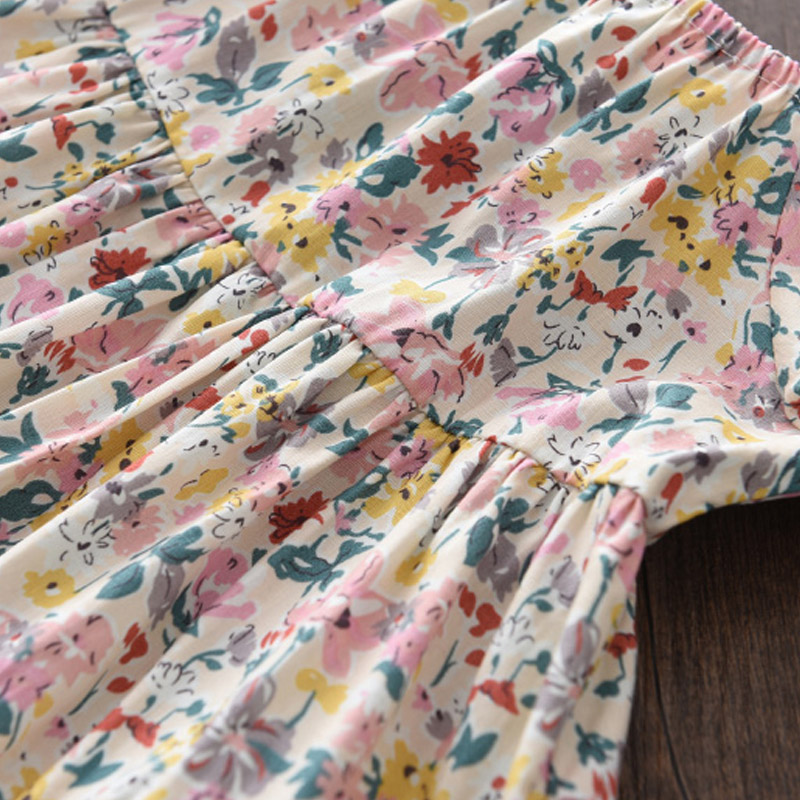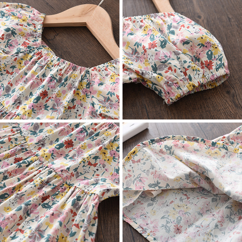 หมีผู้นําสาวแต่งตัว2024ฤดูร้อนใหม่สาวน้อยชุดเจ้าหญิงเด็กแฟชั่นสไตล์ต่างประเทศเวอร์ชั่นเกาหลีของกระโปรงผ้าฝ้ายลายดอกไม้แนวโน้