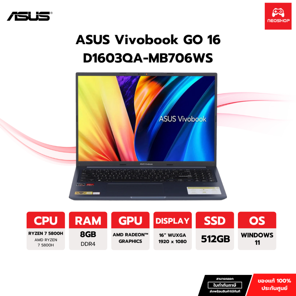 โน๊ตบุ๊ค Notebook ASUS Vivobook 16 D1603QA-MB706WS Quiet Blue by Neoshop (ประกันศูนย์ 3 ปี)