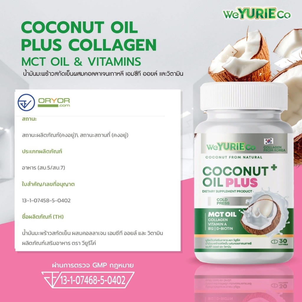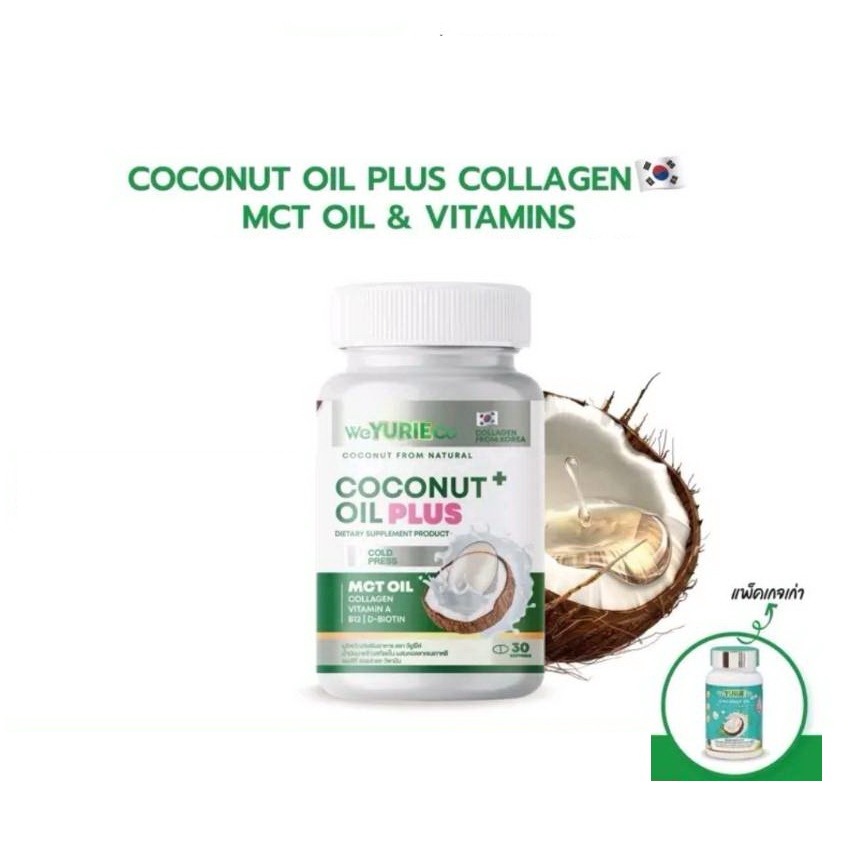 💚ใหม่สุด💚 Weyurieco/ Yurie CoConut oil Plus ยูริ โคโค่ น้ำมันมะพร้าวสกัดเย็น ผสมคอลลาเจน 30 แคปซูล