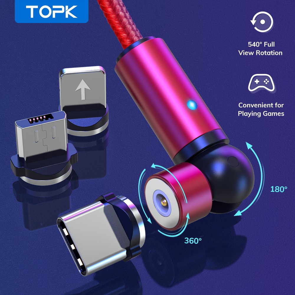 Topk AM68 สายชาร์จ Usb Type C ไมโคร แบบแม่เหล็ก หมุนได้ 360°& 180° ฟรี 540° สําหรับ iPhone