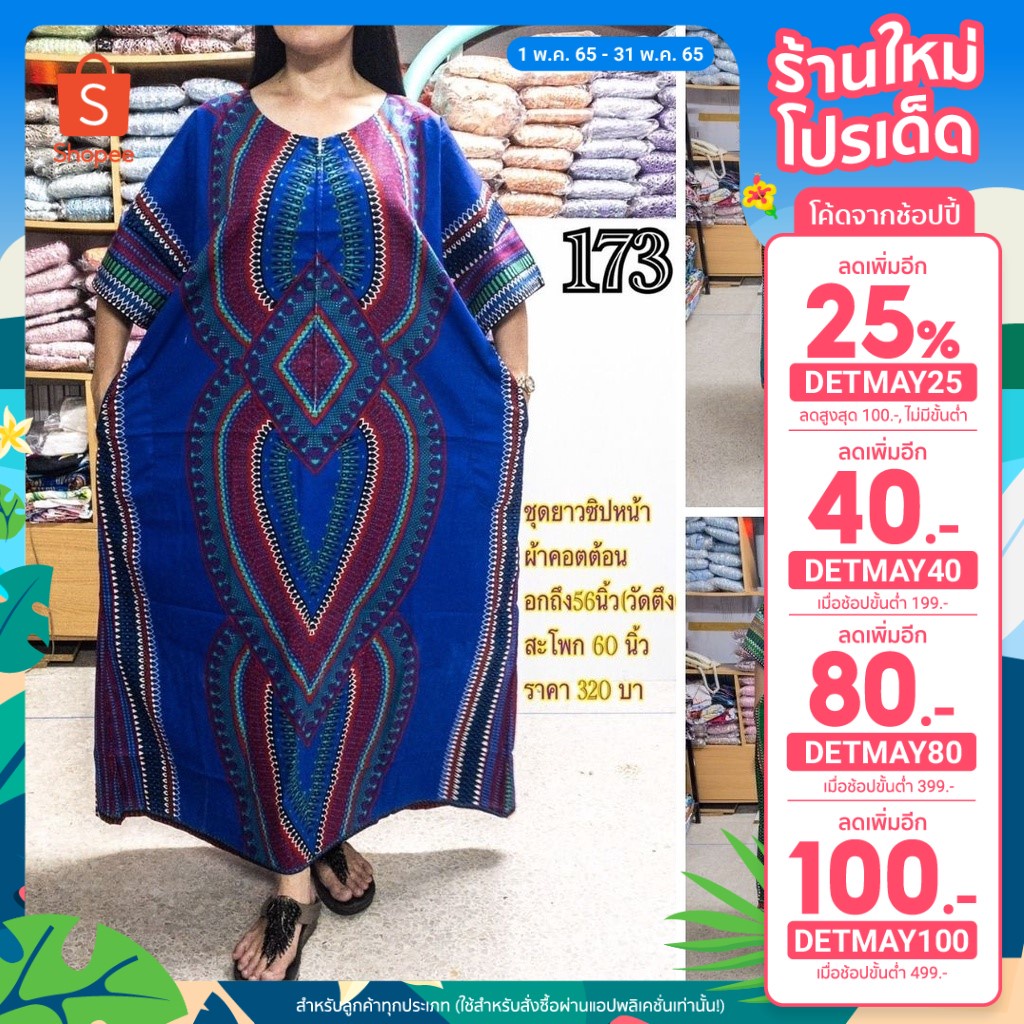 [ส่งฟรี+ ชุดนอนผ้าคอตต้อน100% งานเย็บไทย แบบมีแขนจัมโบ้ ฟรีไซส์อก48-60ใส่ได้ ผ้าคอตตอนแท้ 100% งานเย็บไทย )