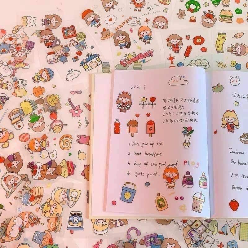 สติ๊กเกอร์ลายการ์ตูน สติ๊กเกอร์น่ารัก ตกแต่งติดสมุดการบ้าน ติดขวดน้ำ