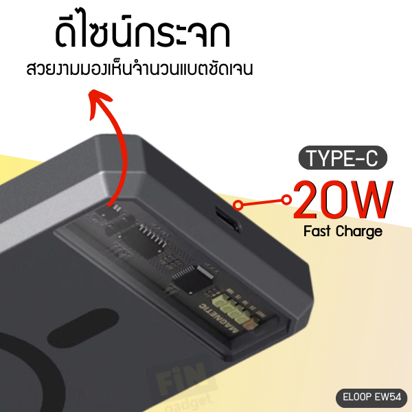 แบตสำ รอง Eloop Orsen EW54 10000 mAh Magnetic Wireless Charger รองรับ PD 20W