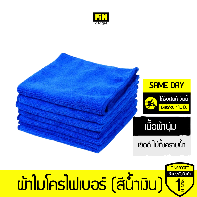 ผ้าไมโครไฟเบอร์สีน้ำเงิน ผ้านุ่ม เช็ดดี ไม่เป็นรอย ไม่ทิ้งคราบน้ำ ขนาด 30x30 ซม