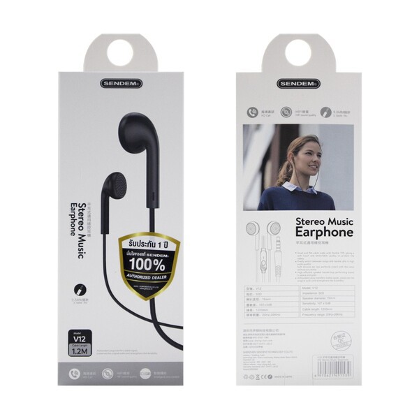 หูฟัง Smalltalk Sendem SDM-V12 มีไมค์ในตัว แบบ Earbud ของแท้ ประกันศูนย์ 1 ปี