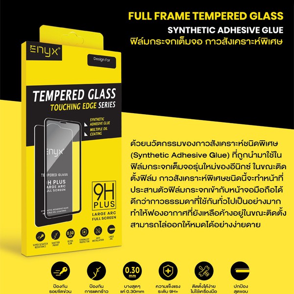 ฟิล์มกระจก ENYX ใช้สำหรับมือถือ บางสุด 0.30 mm แข็งแกร่งระดับ 9H+ เทคโนโลยีพิเศษติดง่ายที่สุดๆ