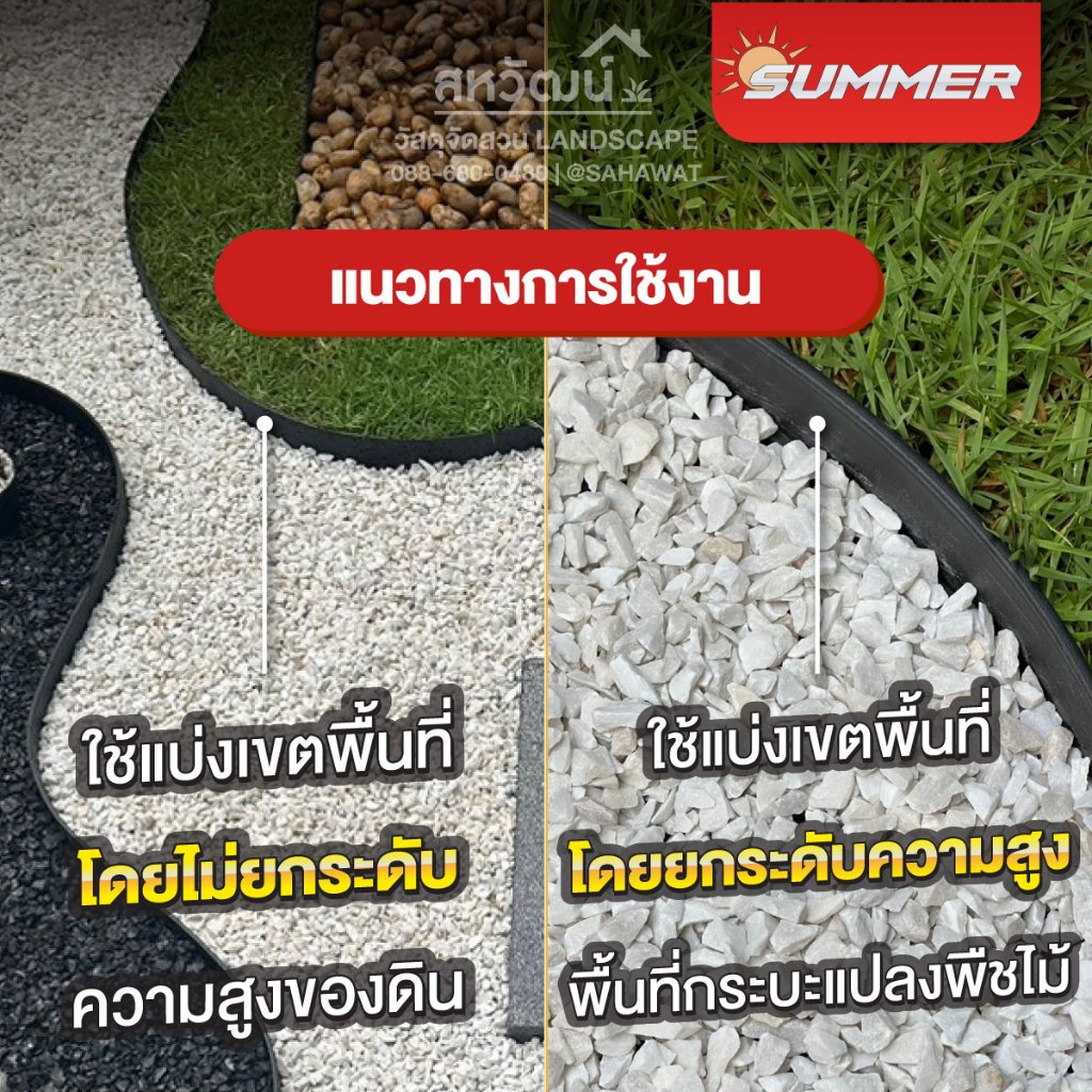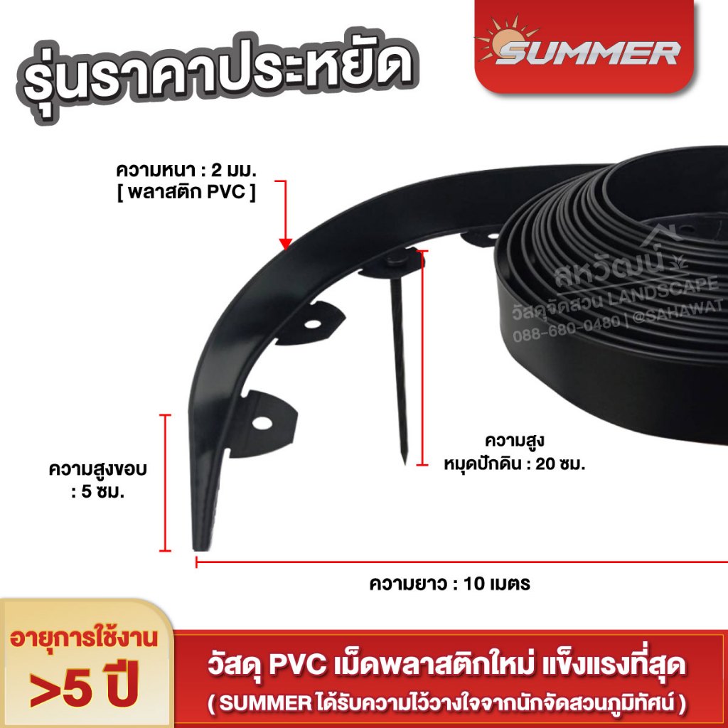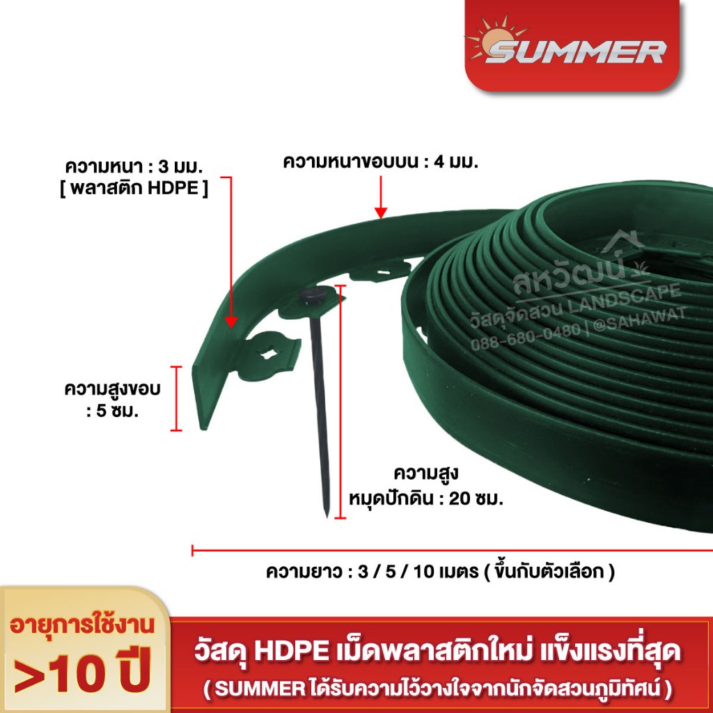 ขอบกั้นดิน HDPE Summer (แบบไม่ต้องขุด) ขอบกั้นหินแบ่งพื้นที่สวน - สูง 5 ซม. ยาว 3 / 5 / 10 เมตร