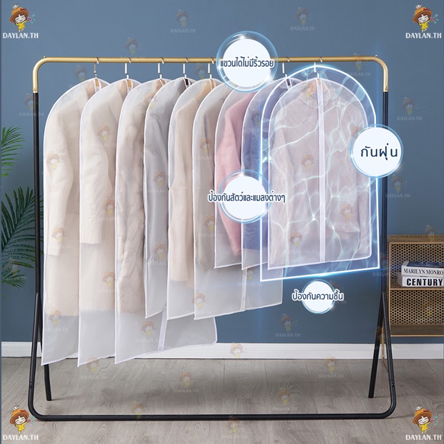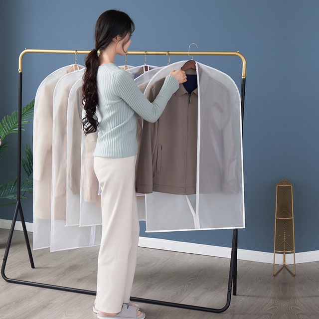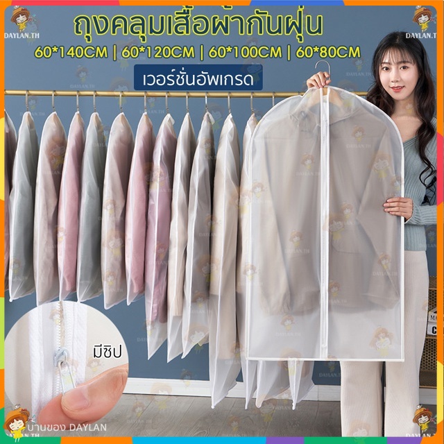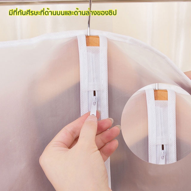 ถุงคลุมเสื้อ ถุงคลุมเสื้อผ้า สีขาวขุ่น แบบซิป ป้องกันฝุ่นเกาะเสื้อผ้าที่เก็บไว้ 4 ขนาด