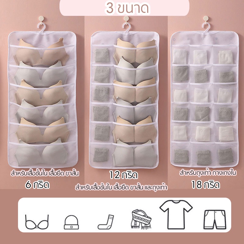 ที่เก็บชุดชั้นใน กระเป๋าแขวน เก็บชุดชั้นใน สำหรับใส่ของจัดระเบียบในตู้เสื้อผ้า (6+12 + 18 ช่อง แบบแขวน)