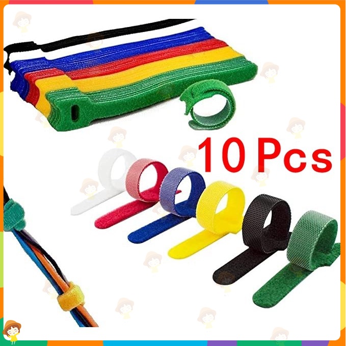 สายรัดเวลโคร ขนาดเล็ก สำหรับจัดเก็บสายเคเบิล สายหูฟัง 10 เส้น