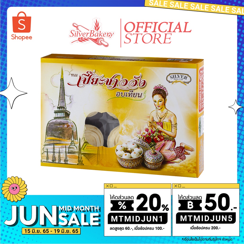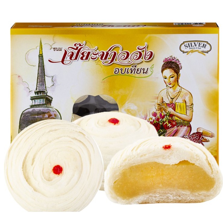 ขนมเปี๊ยะ ชาววังอบควันเทียน ไส้ถั่วทองไข่เค็ม ตรา Silver Bakery ขนาด 200 กรัม