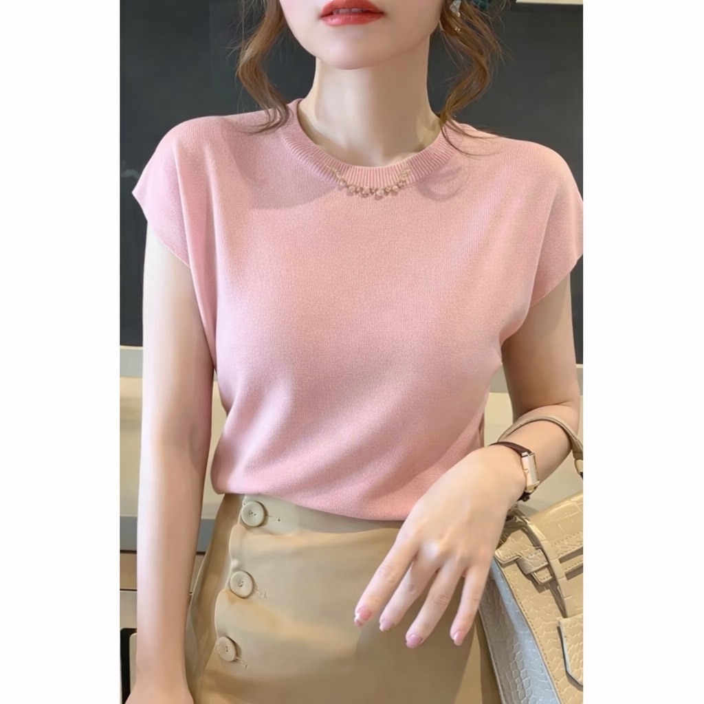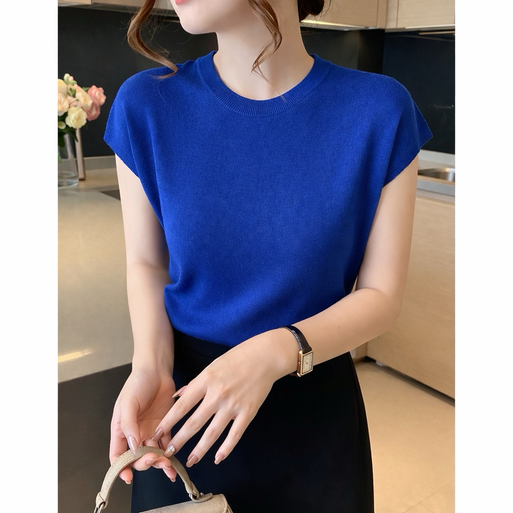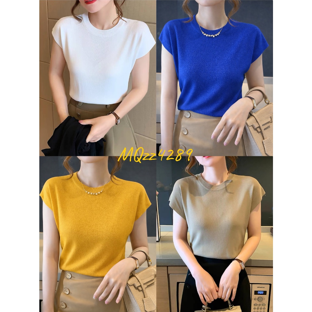 MQzz4289 *พร้อมส่ง* เสื้อทำงานแขนสั้นแบบใหม่ คอกลม ผ้าไหมพรม นุ่มนิ่ม ใส่สบาย ยืดได้เยอะ Free Size