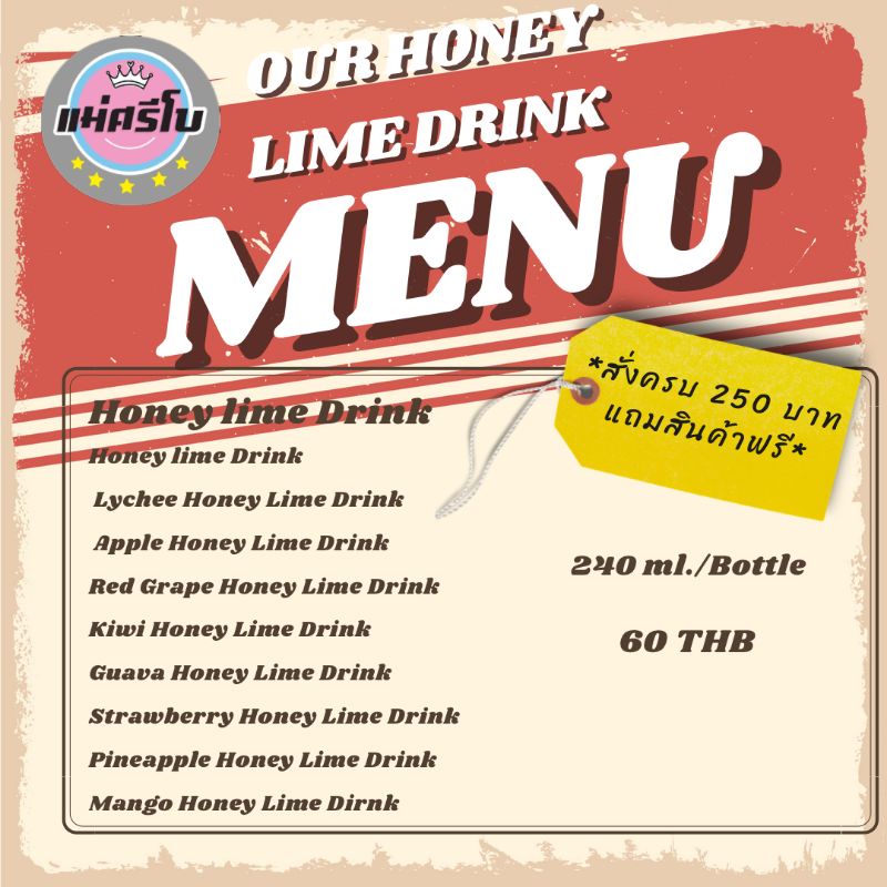 [เก็บโค้ดลดหน้าร้าน]🍹น้ำมะนาว น้ำผึ้งป่า9สูตร🐝 10แถม1 สูตรเข้มข้นมาก (ค่าส่งเหมา25บาท)