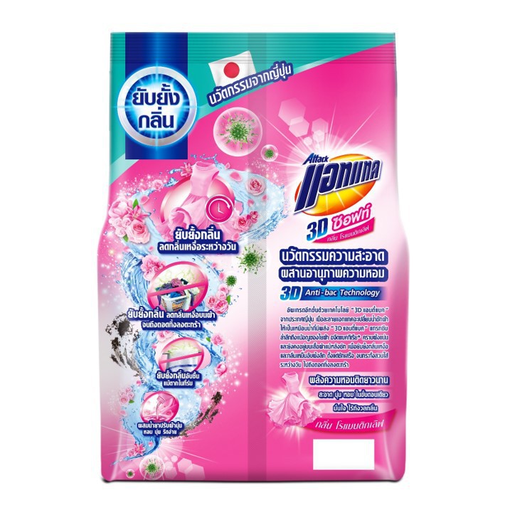 แอทแทค 3D ซอฟท์ โรแมนติก เลิฟ ผงซักฟอก สูตรเข้มข้น1600 G Attack 3D Soft Romantic Love Powder Detergent 1600G