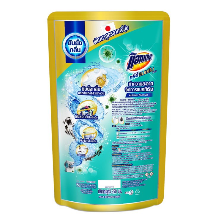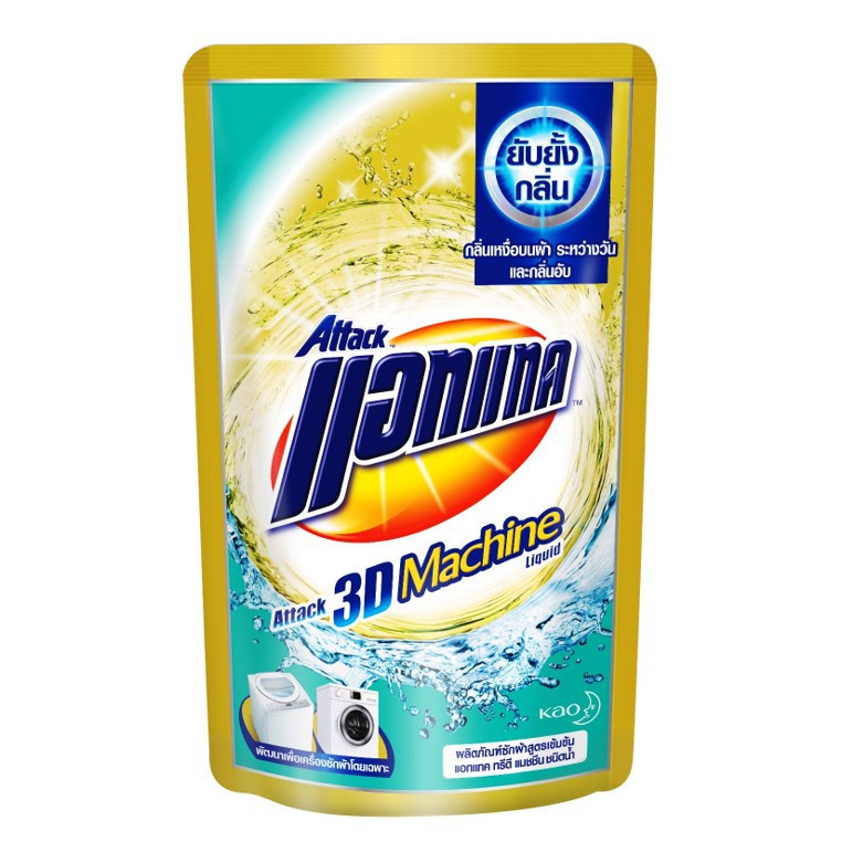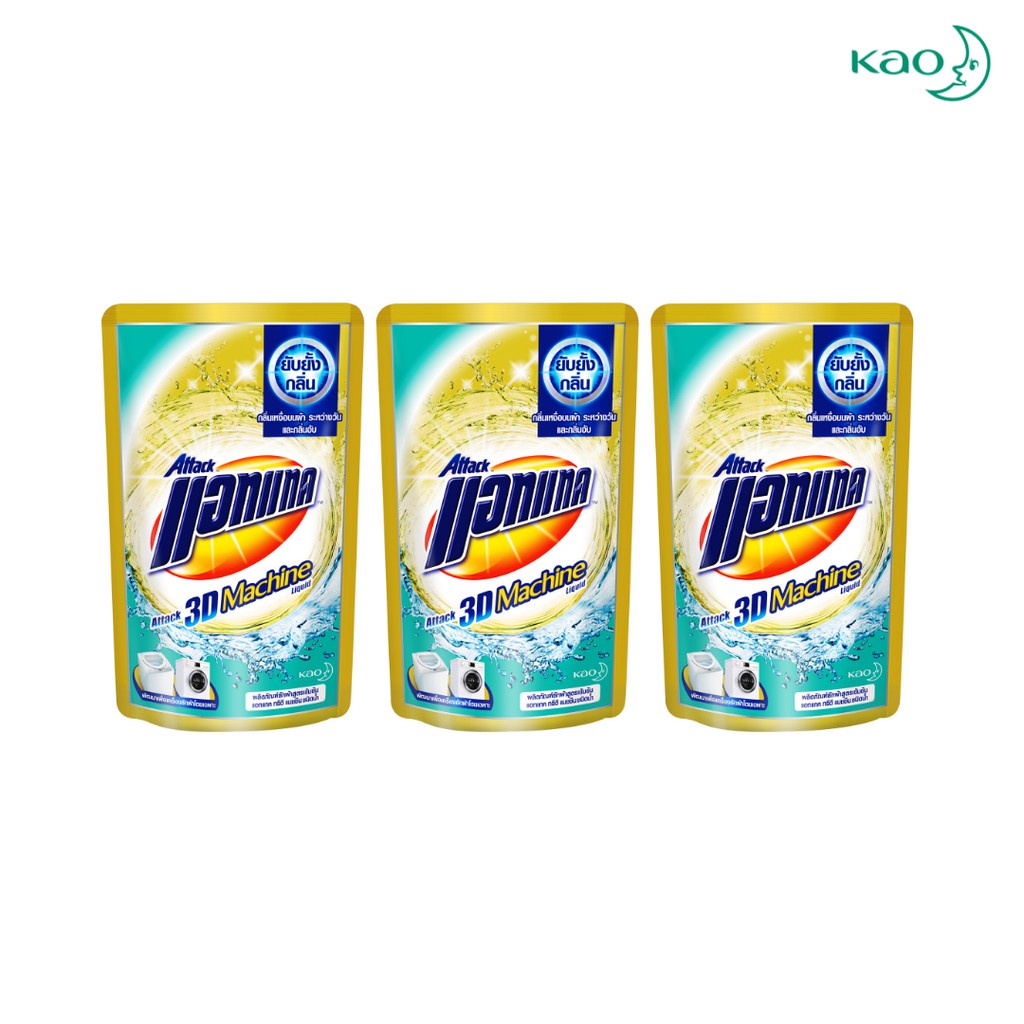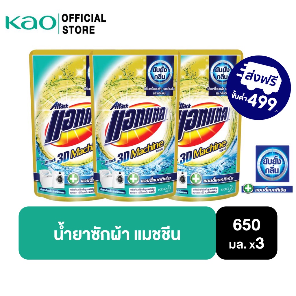 [แพ็ค3] แอทแทค 3D แมชชีน น้ำยาซักผ้า สูตรเข้มข้น 650ml Attack 3D Machine Liquid Laundry Detergent 650ml