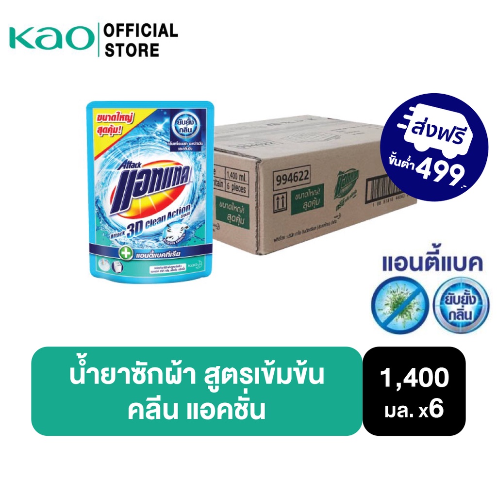 [ยกลัง] แอทแทค 3D คลีน แอ็คชั่น น้ำยาซักผ้า สูตรน้ำ 1400 มลAttack 3D Clean Action Liquid Laundry Detergent 1400ml