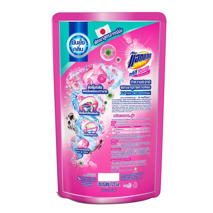 [แพ็ค2] แอทแทค 3D ซอฟท์ โรแมนติก เลิฟ สูตรน้ำ 720 ml