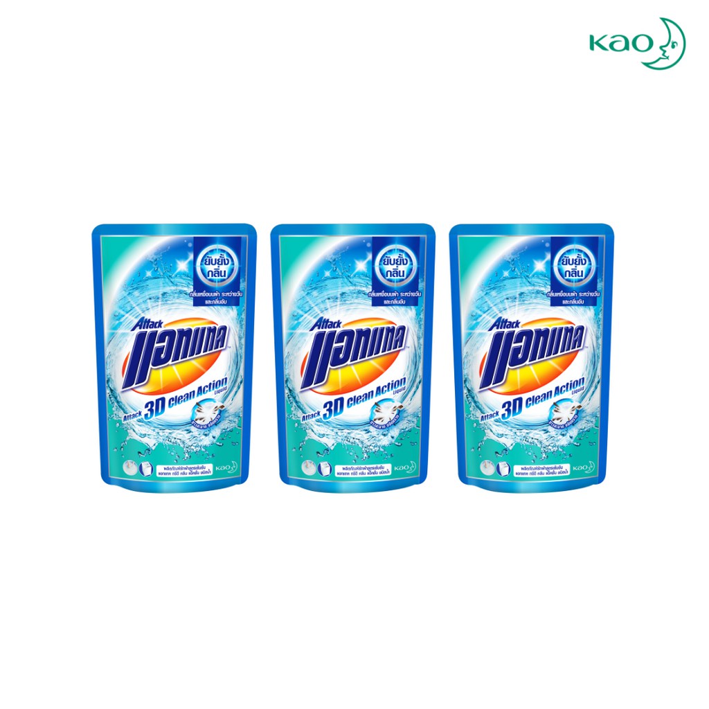 [แพ็ค3] แอทแทค 3D คลีน แอ็คชั่น น้ำยาซักผ้าสูตรเข้มข้น 770ml Attack 3D Clean Action Liquid Laundry Detergent 770ml