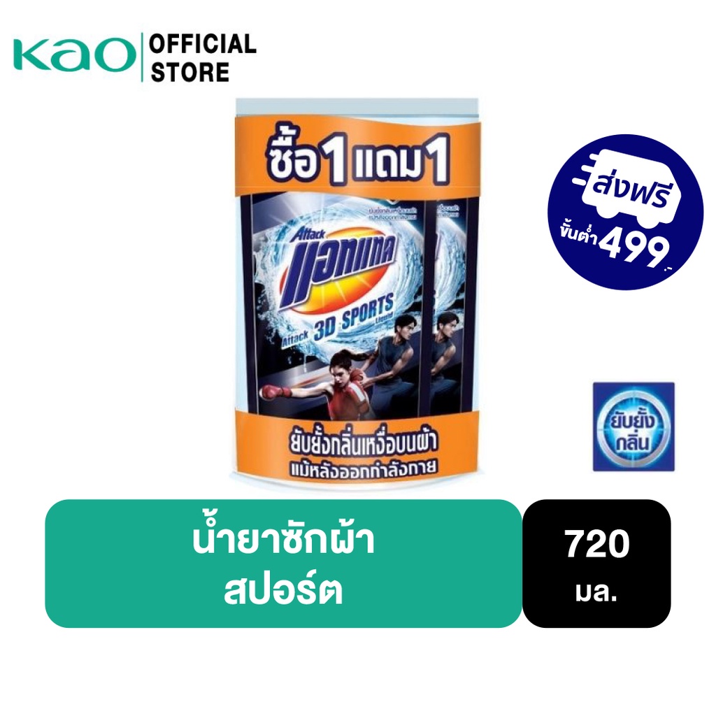 [1แถม1] แอทแทค 3D ผลิตภัณฑ์ซักผ้าสูตรเข้มข้น สปอร์ต กลิ่นแอคทีฟเฟรช ชนิดน้ำ 720 ml