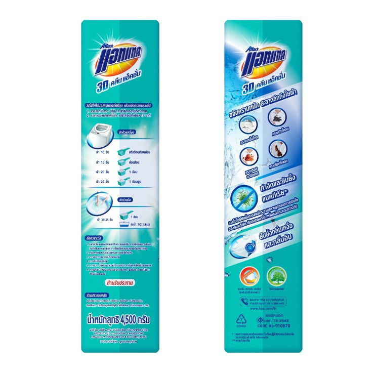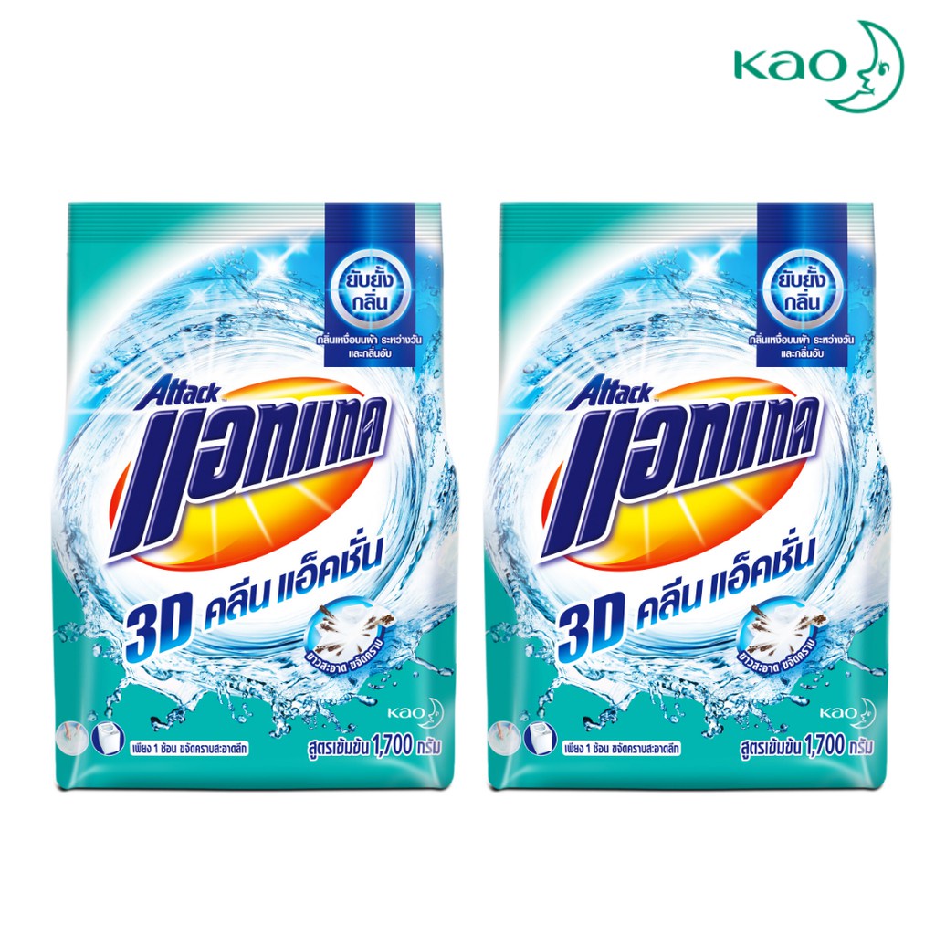 [แพ็ค2] แอทแทค 3D คลีน แอ็คชั่น ผงซักฟอก สูตรเข้มข้น 1700 G Attack 3D Clean Action Powder Detergent 1700G