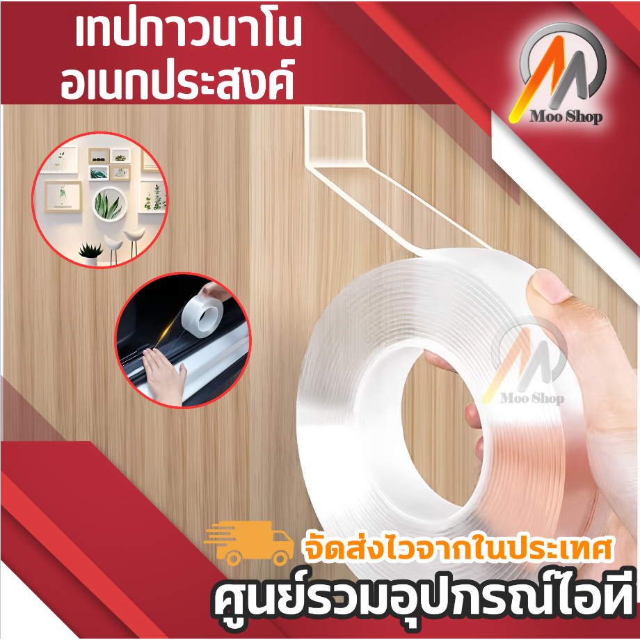 กาวสองห น้าแบบใส เหนียวหนึบ เทปนาโน สำหรับงานอเนกประสงค์ 1m.3m.5m.
