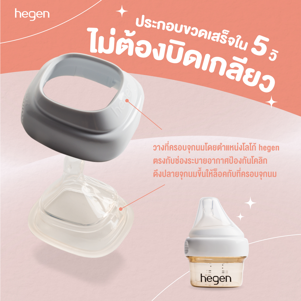 Hegen ขวดนมทรงเหลี่ยมPPSU ขวดนมสีชา 2oz/60ml - จุกนมเสมือนนมแม่ #0 Extra Slow Flow 0-1 เดือน