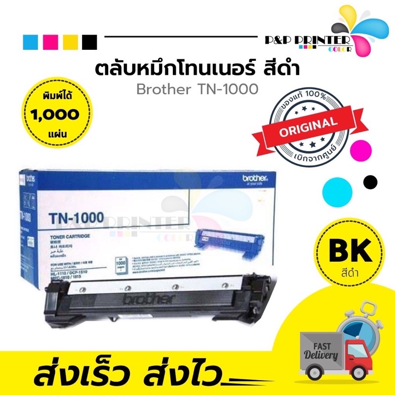 ตลับหมึก โทนเนอร์ TN1000 สีดำ Brother (ของแท้100%) พร้อมส่ง ทันที ตัวเลือก : หมึกแท้ / เทียบเท่า
