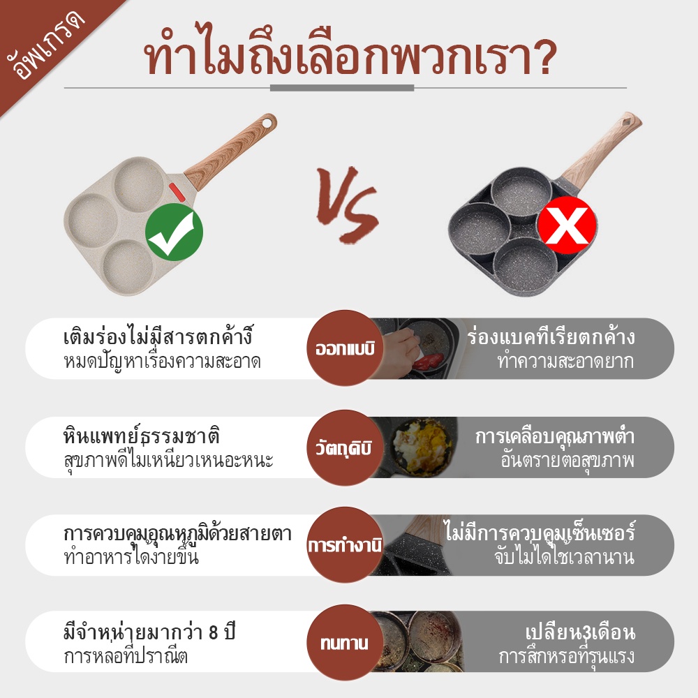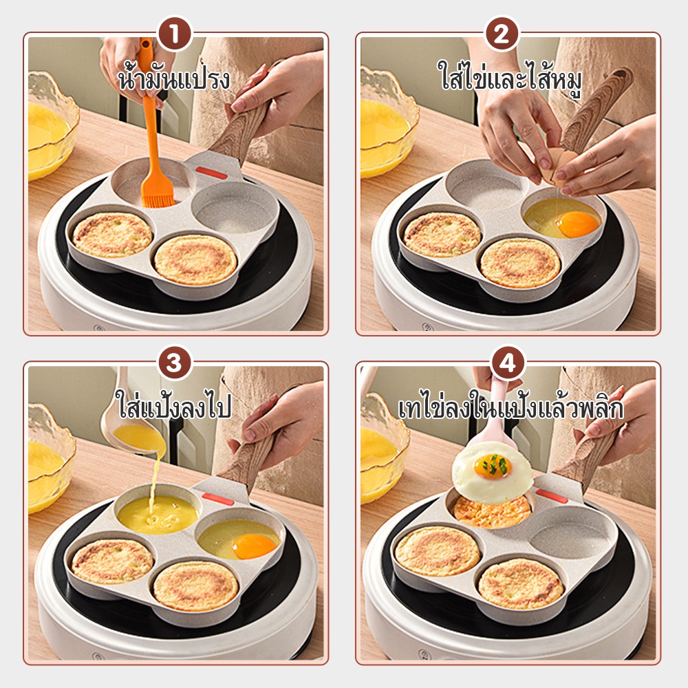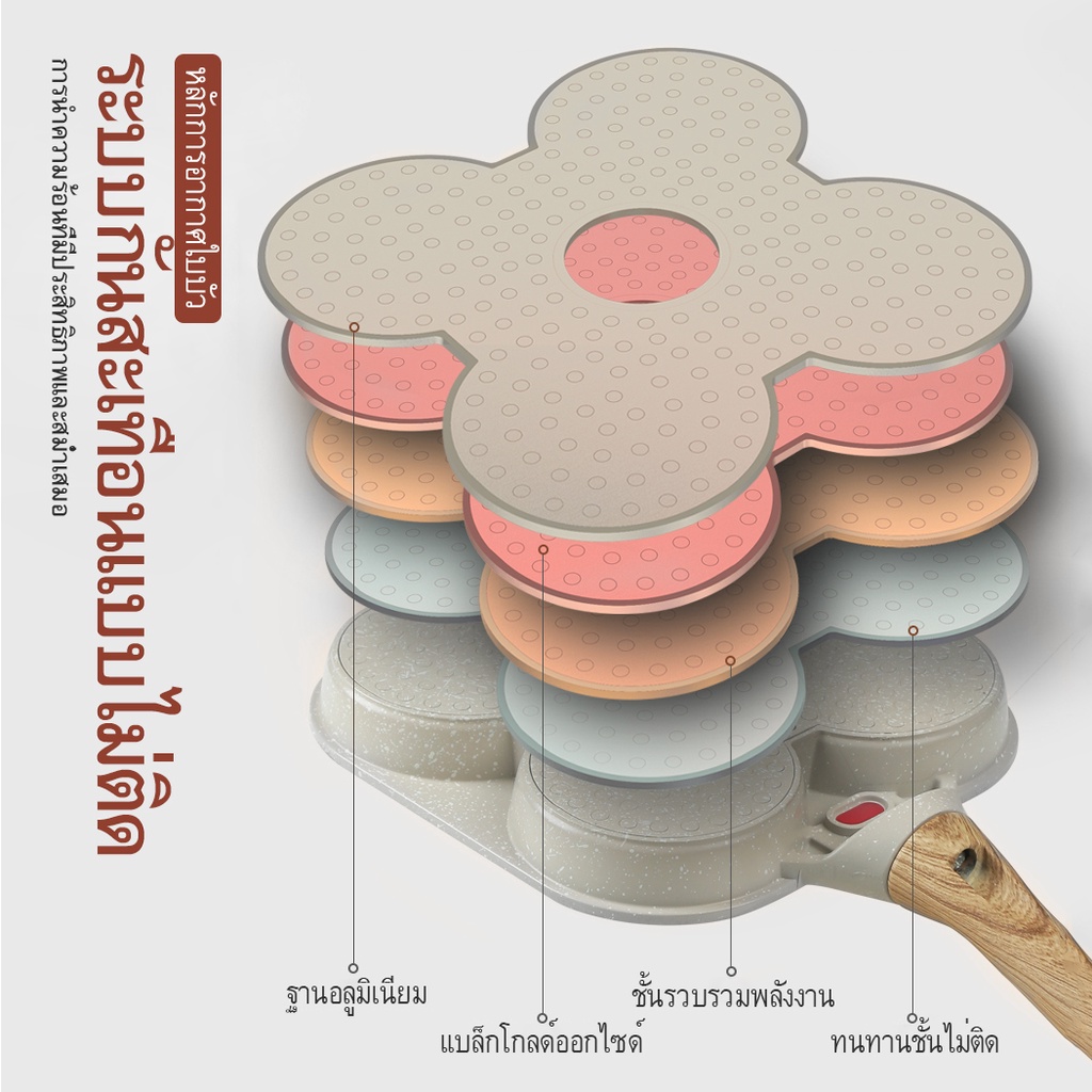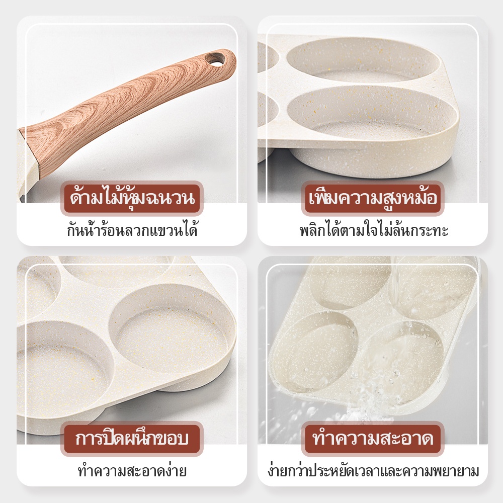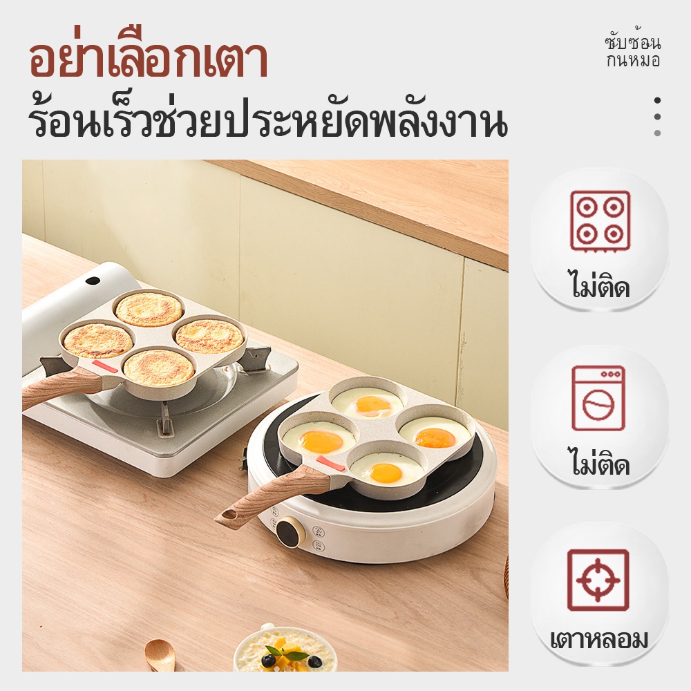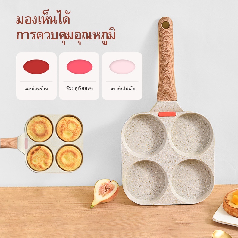 Yinkeo กระทะ สไตล์ญี่ปุ่น กระทะ 4 หลุม กระทะหินอ่อน เหมาะสำหรับเตาแม่เหล็กไฟฟ้า.