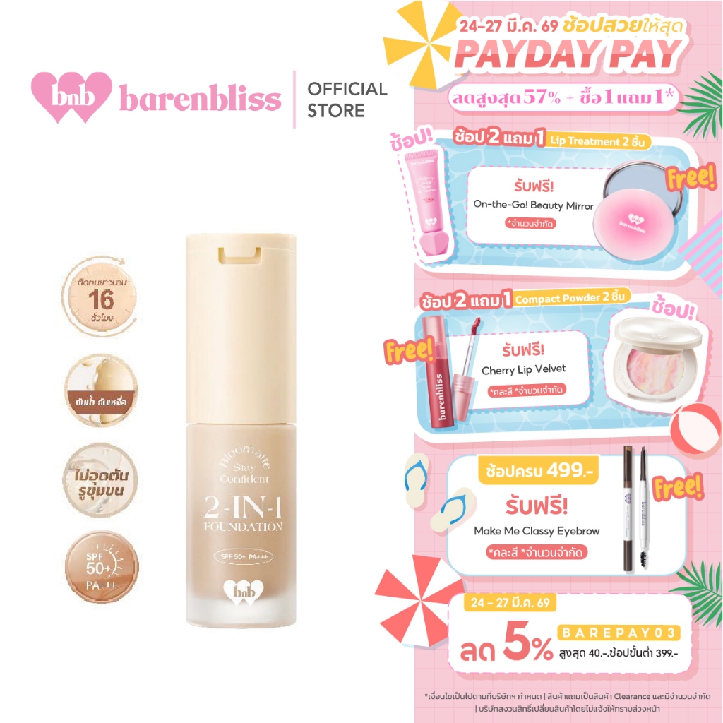 bnb barenbliss Bloomatte Stay Confident 2-in-1 Foundation รองพื้นสูตร 2-in-1เนื้อบางเบา ติดทนยาวน าน