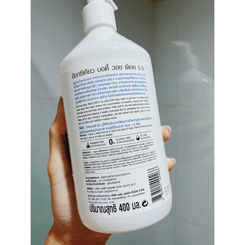 ื(EXP.2027) Oxe'cure Body Wash PH 5.5 400ml เจลอาบน้ำ ป้องกันสิวที่หลัง และหน้าอก