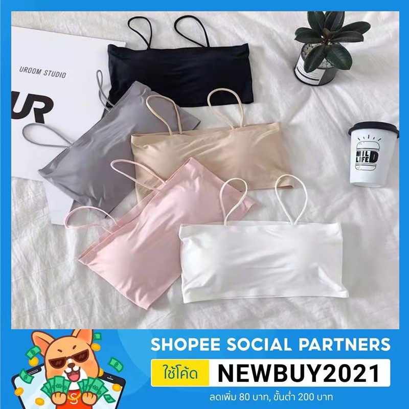 SALE🔥🔥 เสื้อเกาะอกผ้าไหมน้ำแข็ง บราเกาะอกสายเดี่ยว เสริมฟองน้ำในตัว ผ้าเย็น ลื่น ยืดหยุ่นได้ดี